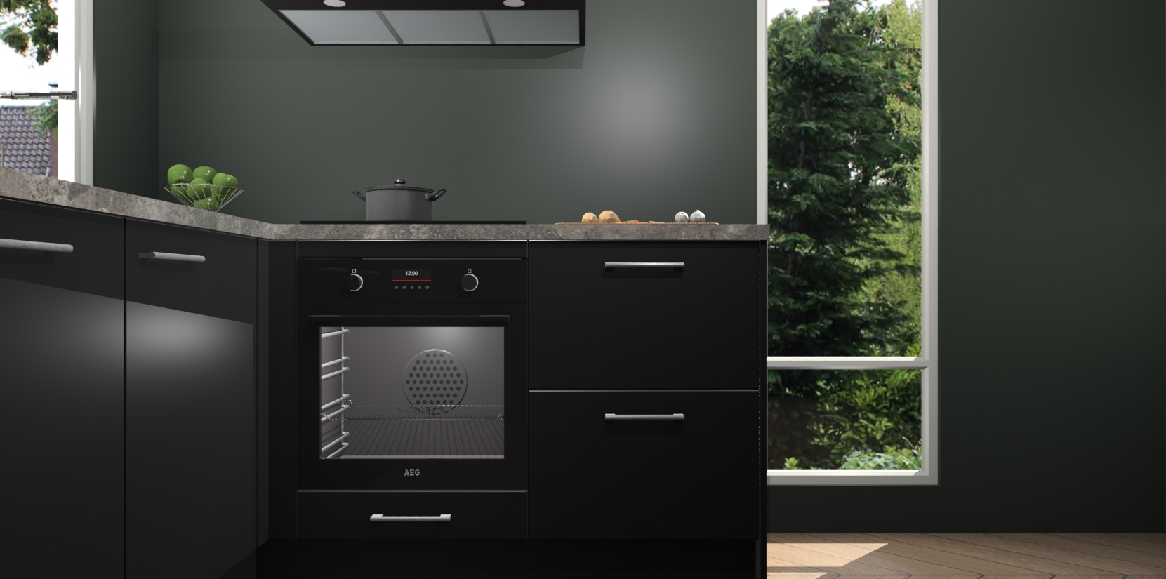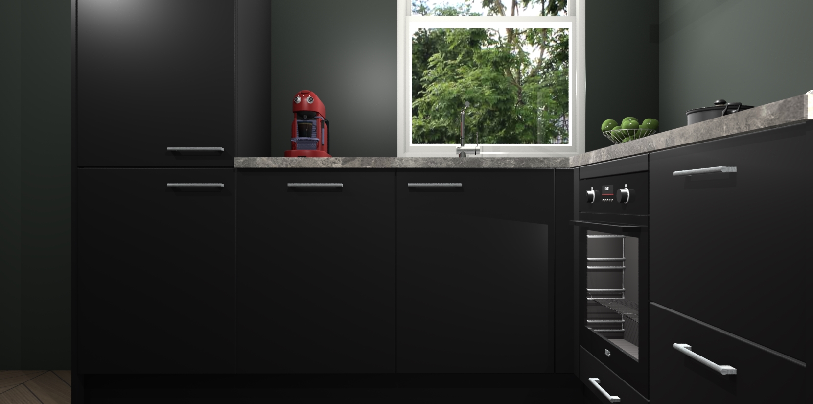 De Zwarte keuken Phuket heeft alles wat u maar kunt wensen. Niet alleen zijn er softclose deuren, maar ook 5 ingebouwde apparaten: een oven, inductiekookplaat, afzuigkap, vaatwasser en koelkast - waarbij u later gemakkelijk naar het AEG merk, van inductiekookplaat naar kookplaat met geïntegreerde afzuiging of van oven naar combimagnetron kunt upgraden. Dat alles tegen een vast laag tarief! Bovendien geeft de Zwarte keuken Phuket supersnelle levering van 7 weken. Echt iets voor u als u er niet op wilt wachten om het resultaat te zien in eigen keuken!