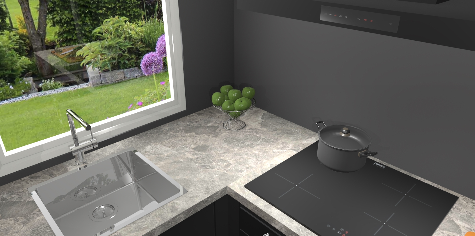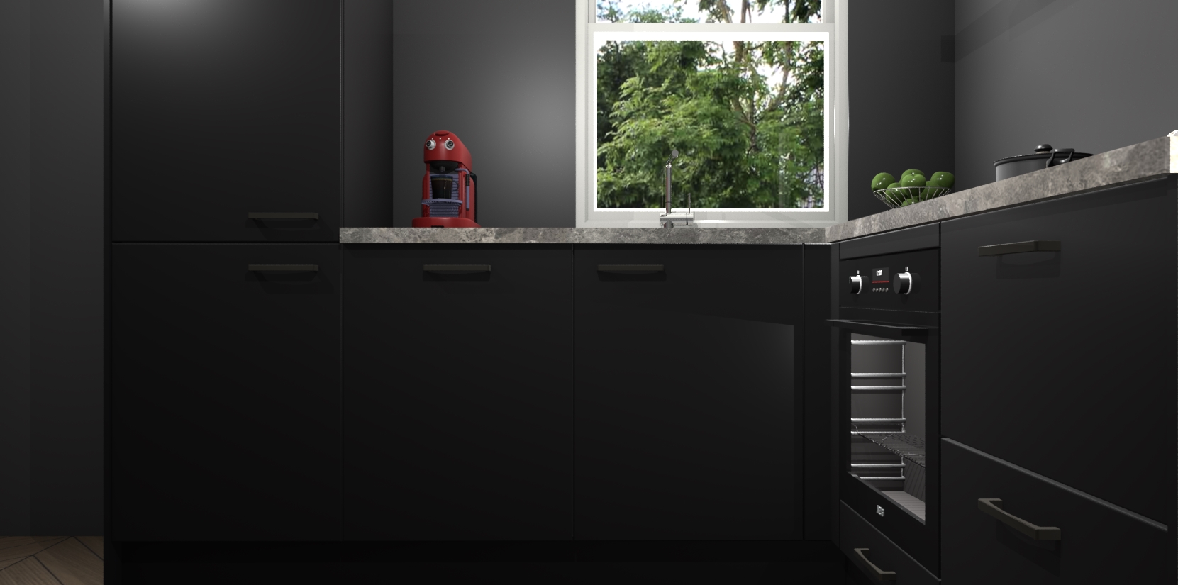 De Zwarte keuken Phuket heeft alles wat u maar kunt wensen. Niet alleen zijn er softclose deuren, maar ook 5 ingebouwde apparaten: een oven, inductiekookplaat, afzuigkap, vaatwasser en koelkast - waarbij u later gemakkelijk naar het AEG merk, van inductiekookplaat naar kookplaat met geïntegreerde afzuiging of van oven naar combimagnetron kunt upgraden. Dat alles tegen een vast laag tarief! Bovendien geeft de Zwarte keuken Phuket supersnelle levering van 7 weken. Echt iets voor u als u er niet op wilt wachten om het resultaat te zien in eigen keuken!