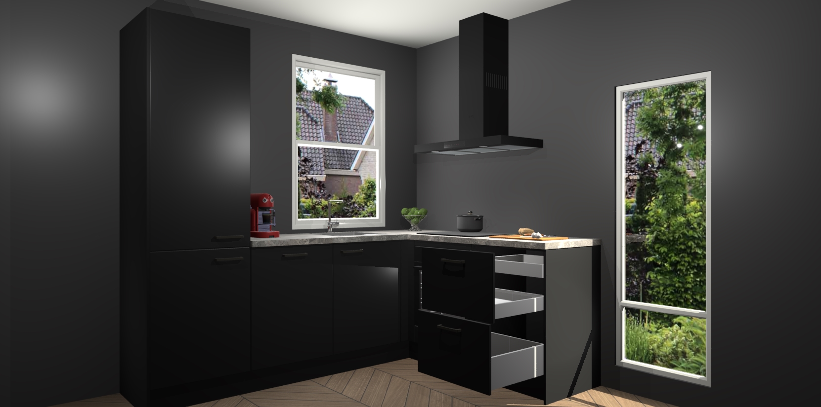 De prachtige Zwarte keuken Phuket is de perfecte keuze als u op zoek bent naar een moderne hoekkeuken met alle luxe en comfort die u kunt verwachten! De uitstraling in het houtlook-design draagt bij aan de warme sfeer die u nu al voelt wanneer u er naar kijkt. Heeft u genoeg van ouderwetse keukens? Probeer dan direct deze moderne, mooie hoekkeukens en laat iedereen verbluft achter!