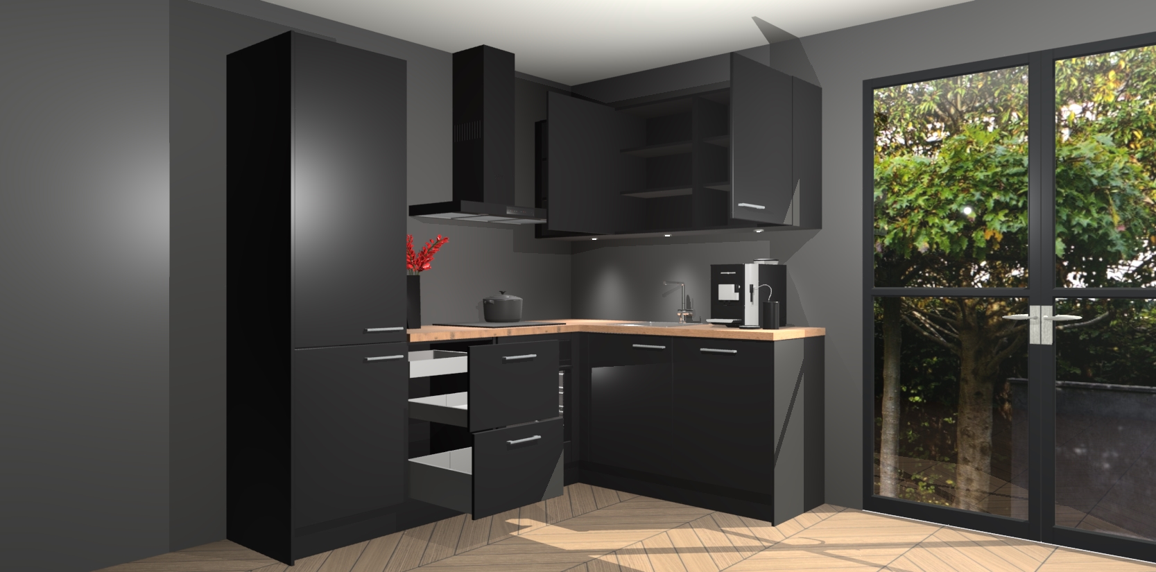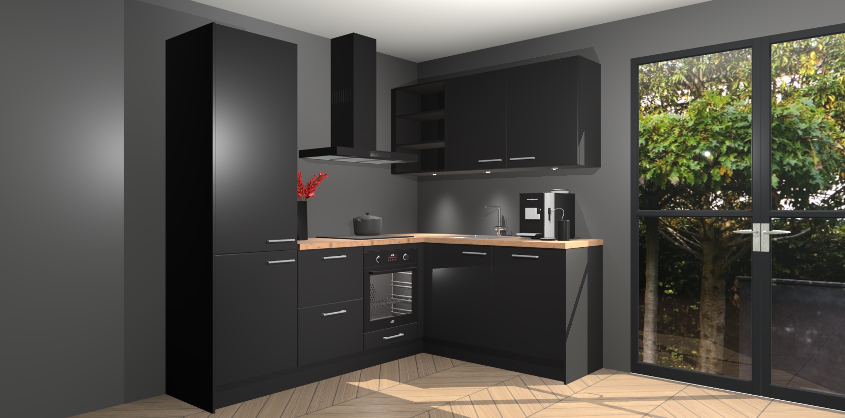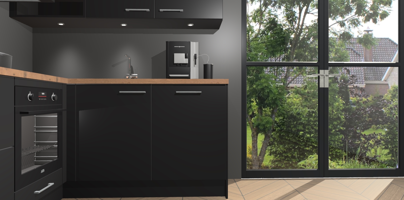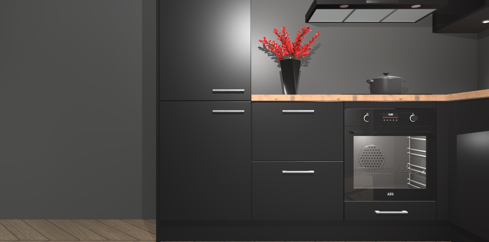 Wauw, dit is de Zwarte keuken Pilsen! U kunt gerust zeggen dat u elegantie combineert met functionaliteit met deze keuken. Met een modern en chique ontwerp is de keuken precies wat u nodig heeft om uw ruimte te verfraaien. De binnenzijde van de kasten is in dezelfde donkere kleur als de buitenzijde voor een uniforme look, compleet met softclose-kasten die stil sluiten.