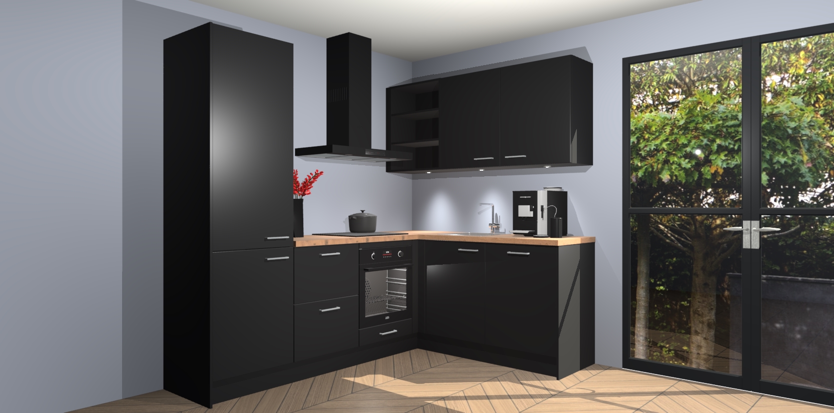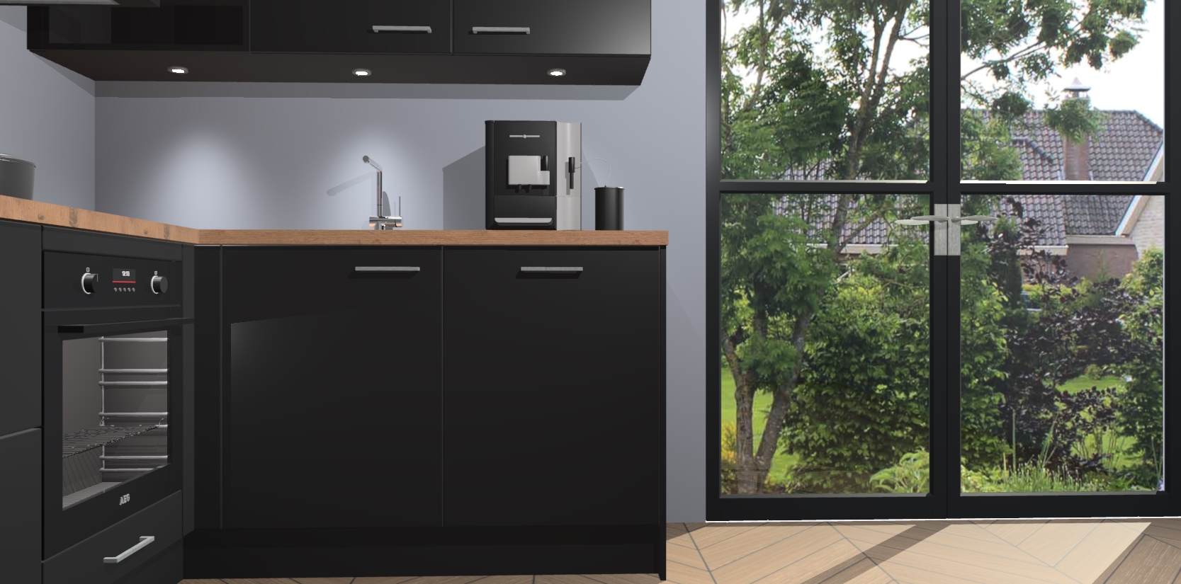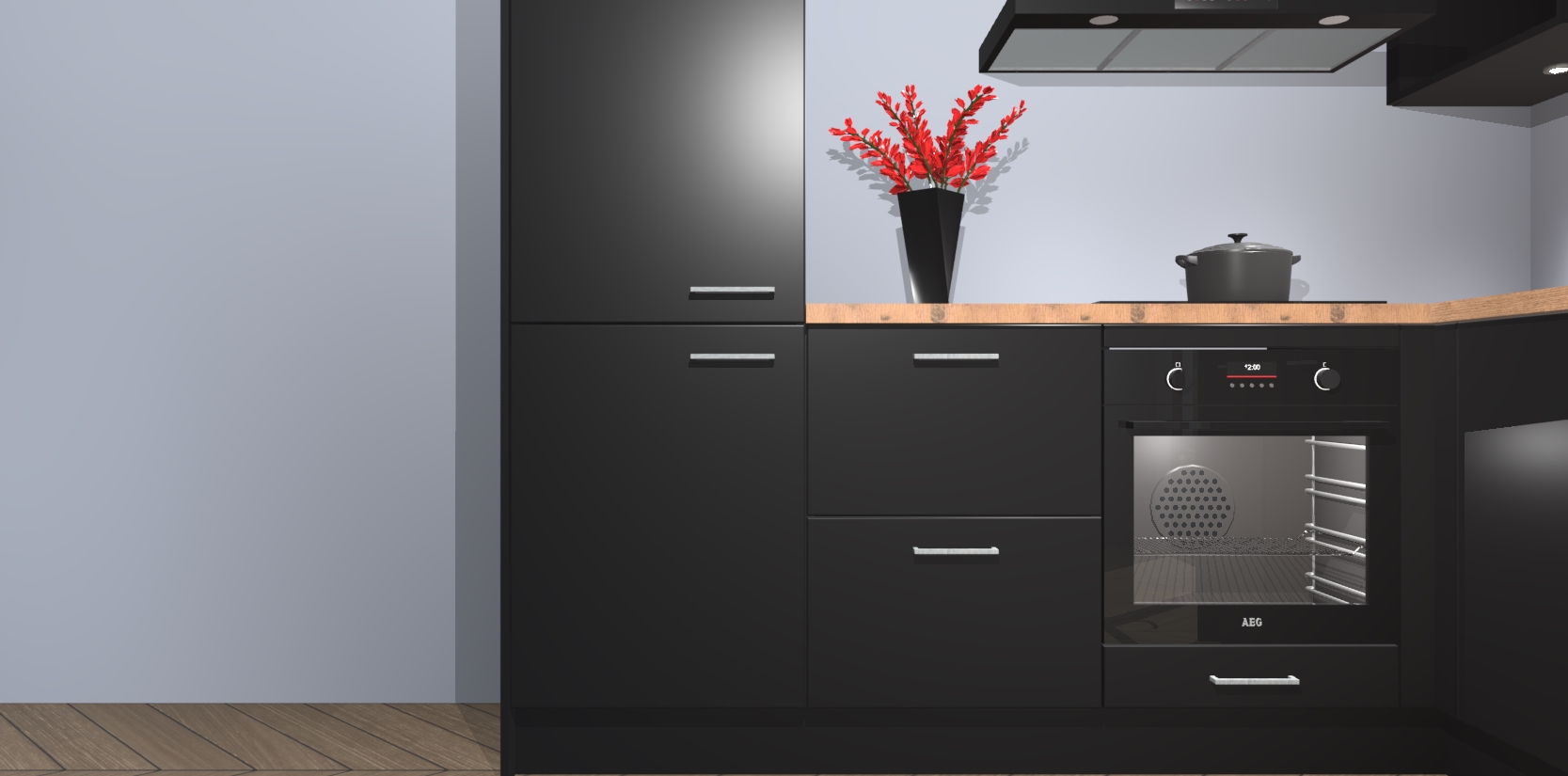 Wauw, dit is de Zwarte keuken Pilsen! U kunt gerust zeggen dat u elegantie combineert met functionaliteit met deze keuken. Met een modern en chique ontwerp is de keuken precies wat u nodig heeft om uw ruimte te verfraaien. De binnenzijde van de kasten is in dezelfde donkere kleur als de buitenzijde voor een uniforme look, compleet met softclose-kasten die stil sluiten.