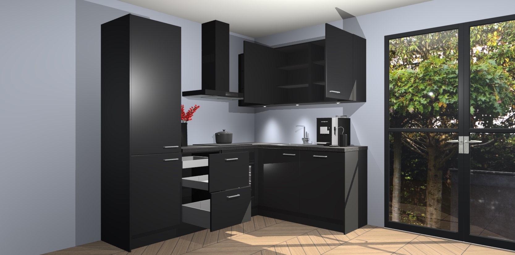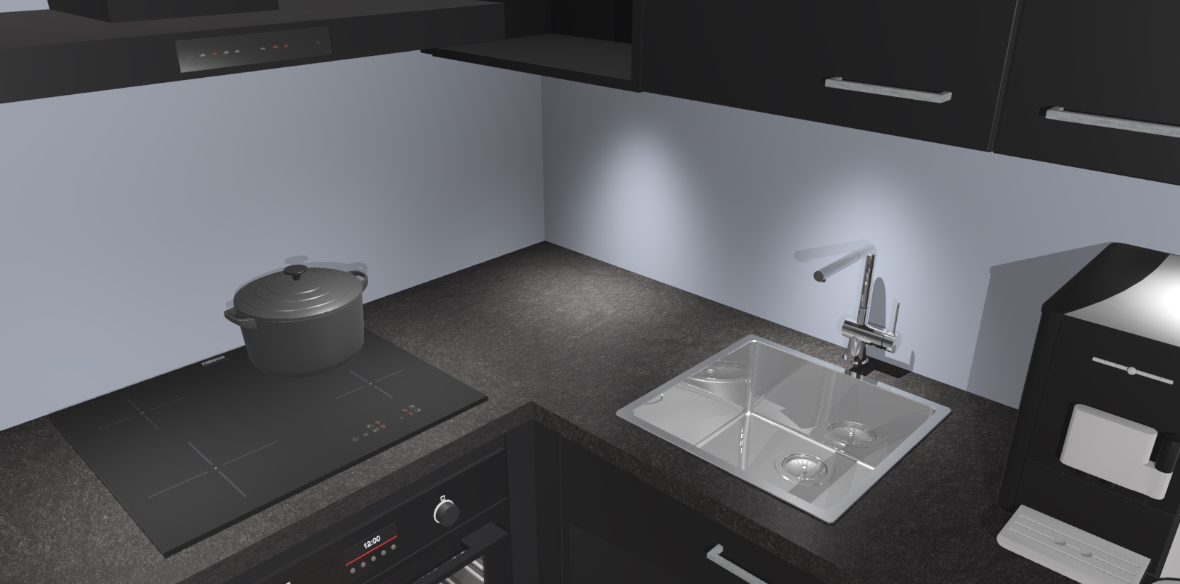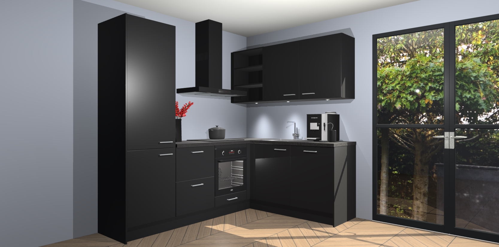Wauw, dit is de Zwarte keuken Pilsen! U kunt gerust zeggen dat u elegantie combineert met functionaliteit met deze keuken. Met een modern en chique ontwerp is de keuken precies wat u nodig heeft om uw ruimte te verfraaien. De binnenzijde van de kasten is in dezelfde donkere kleur als de buitenzijde voor een uniforme look, compleet met softclose-kasten die stil sluiten.