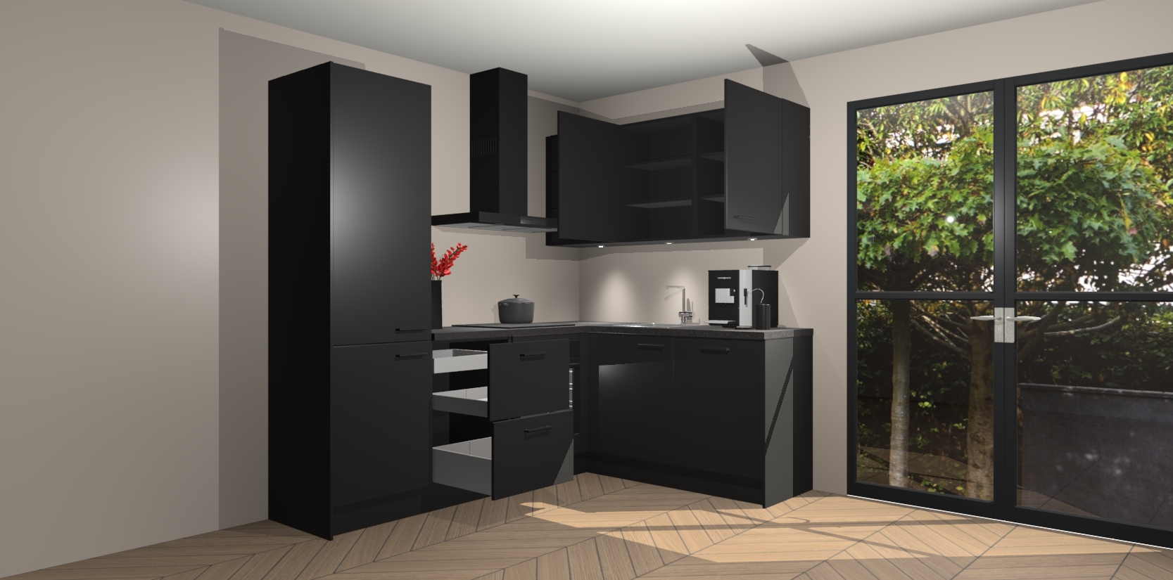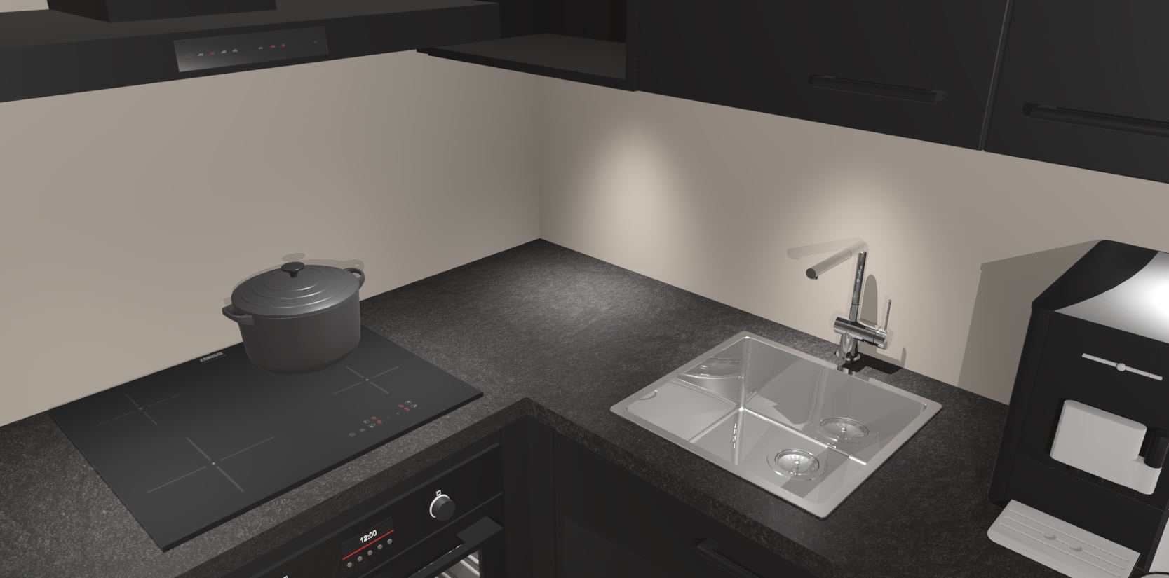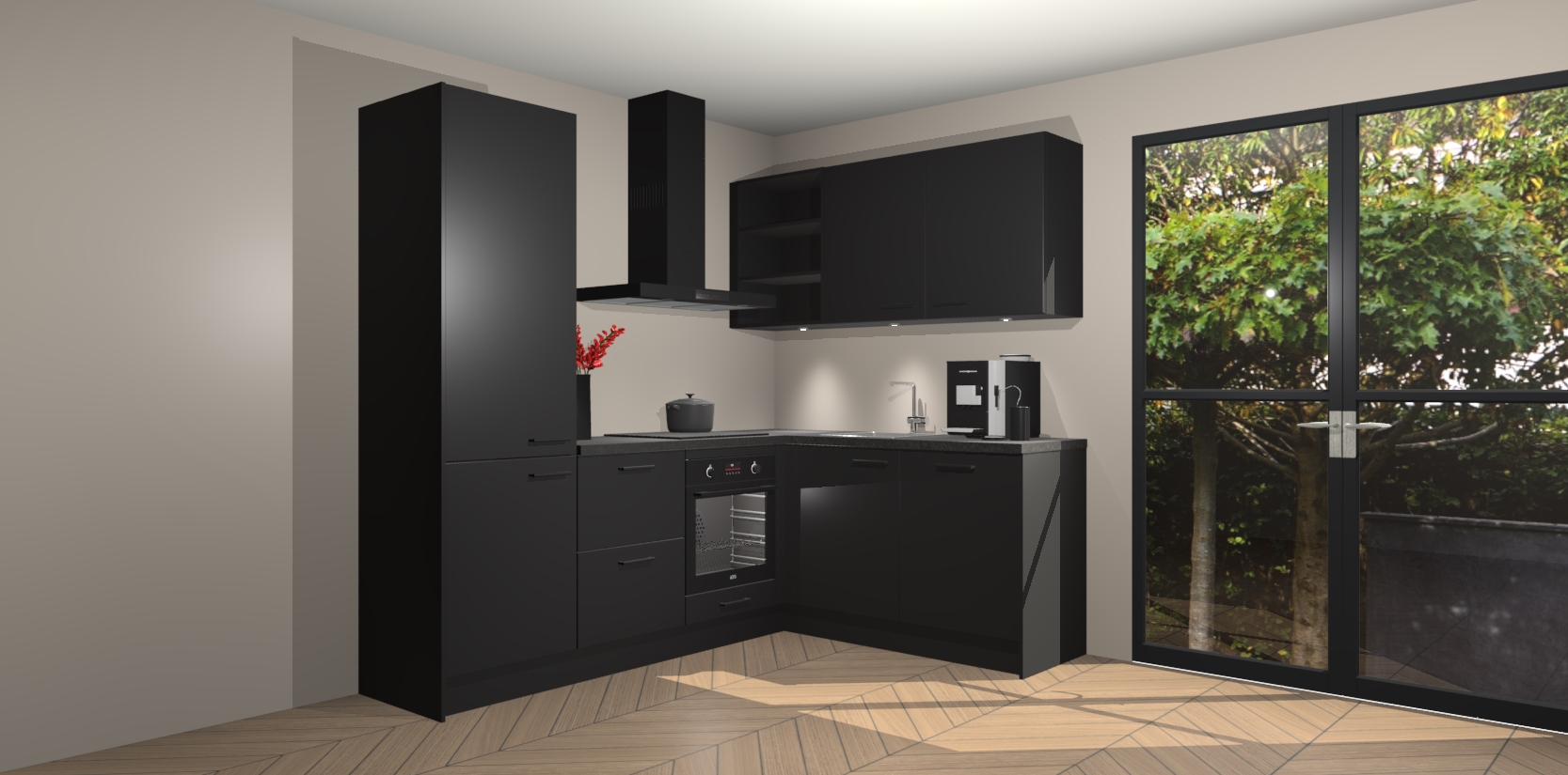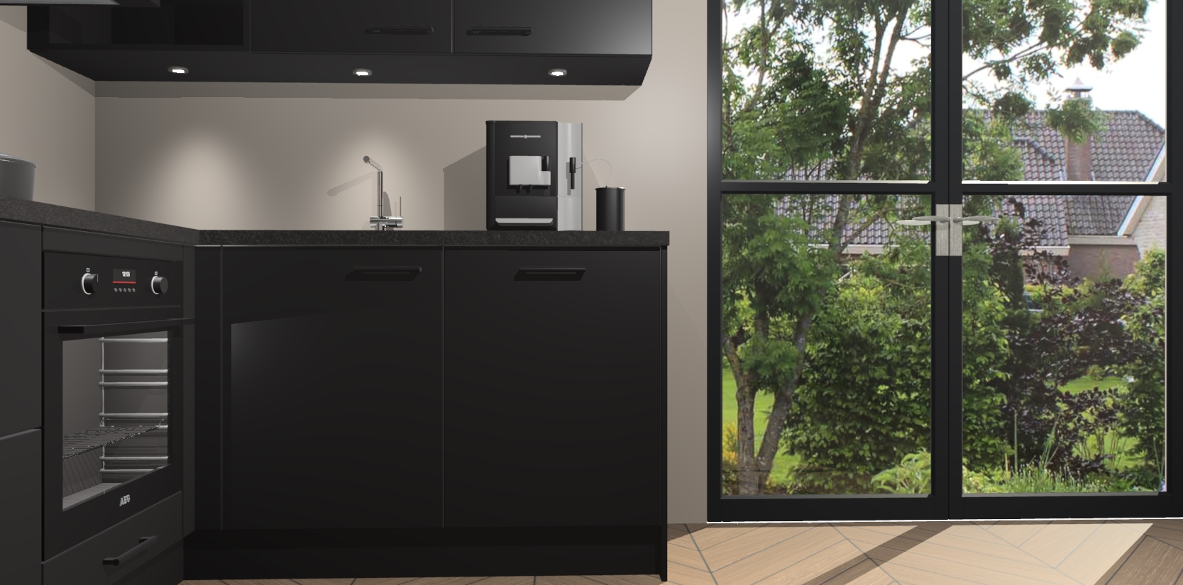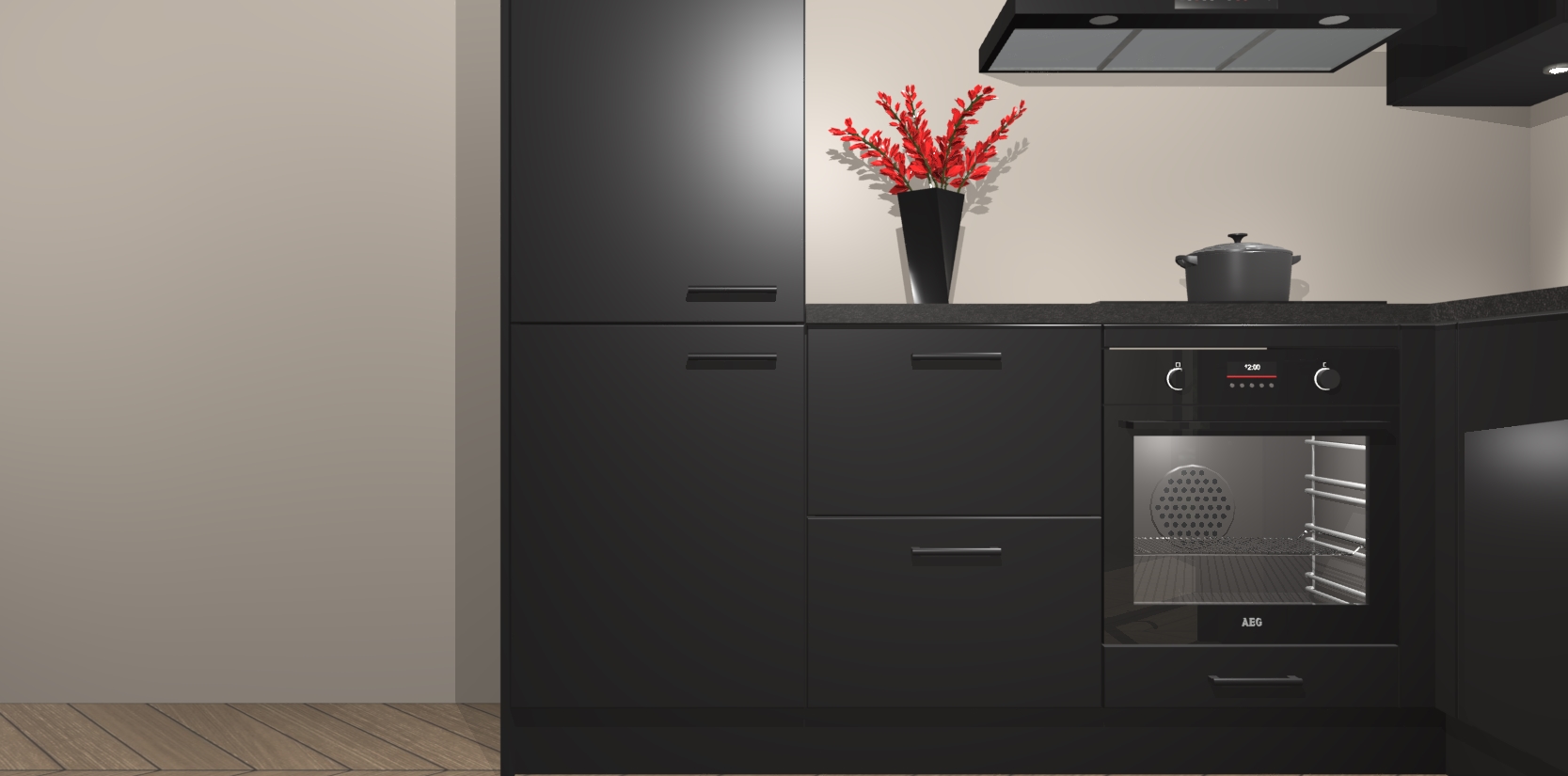 Wauw, dit is de Zwarte keuken Pilsen! U kunt gerust zeggen dat u elegantie combineert met functionaliteit met deze keuken. Met een modern en chique ontwerp is de keuken precies wat u nodig heeft om uw ruimte te verfraaien. De binnenzijde van de kasten is in dezelfde donkere kleur als de buitenzijde voor een uniforme look, compleet met softclose-kasten die stil sluiten.