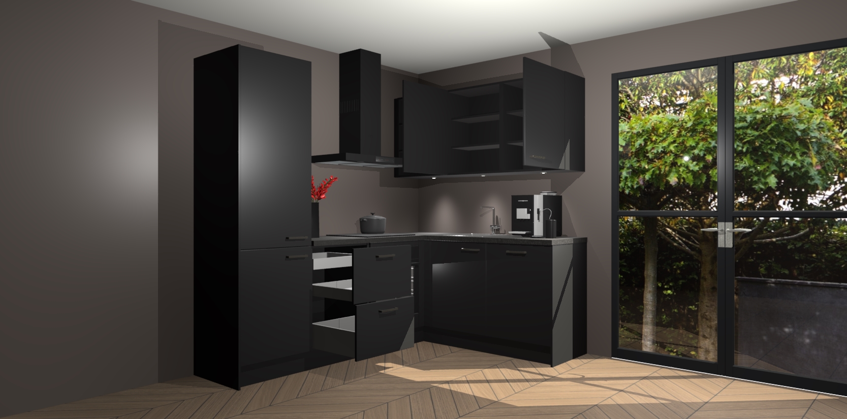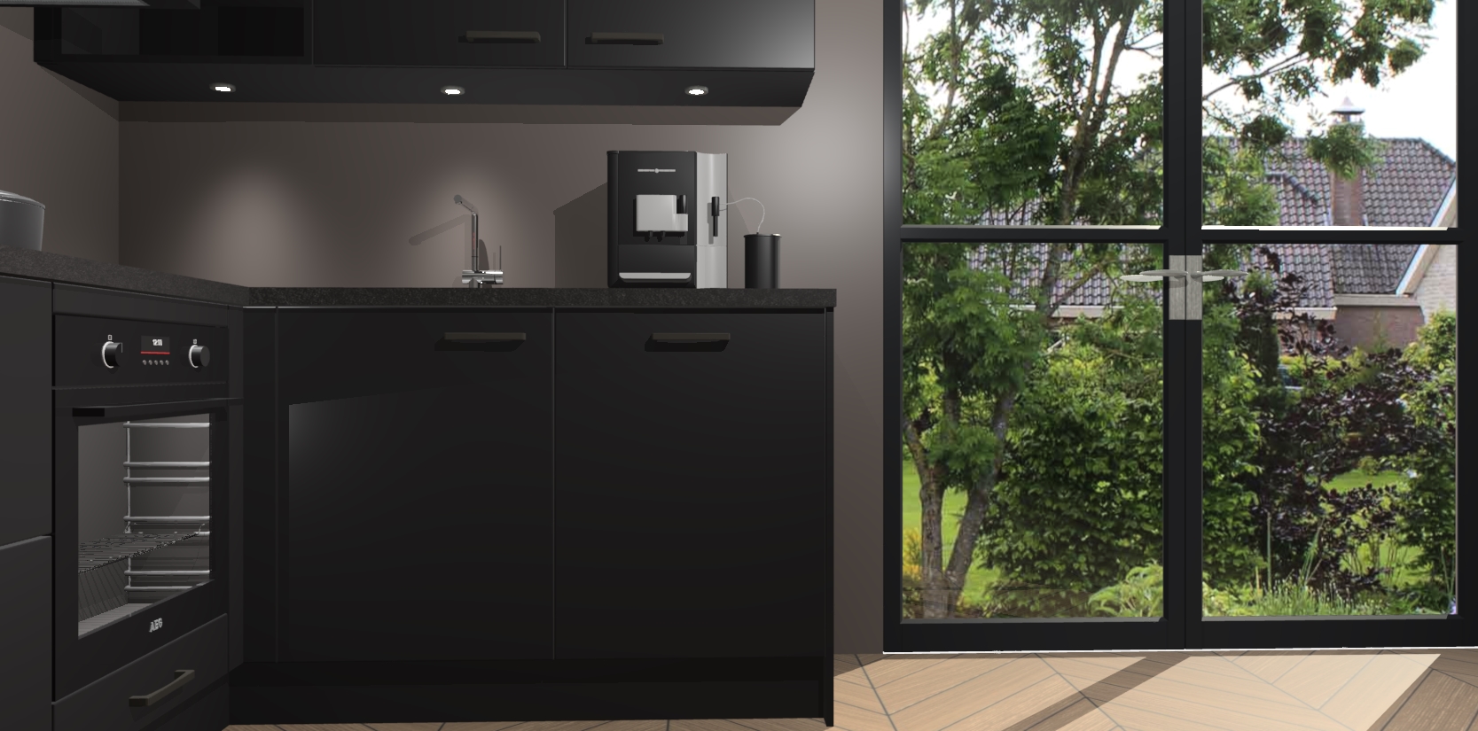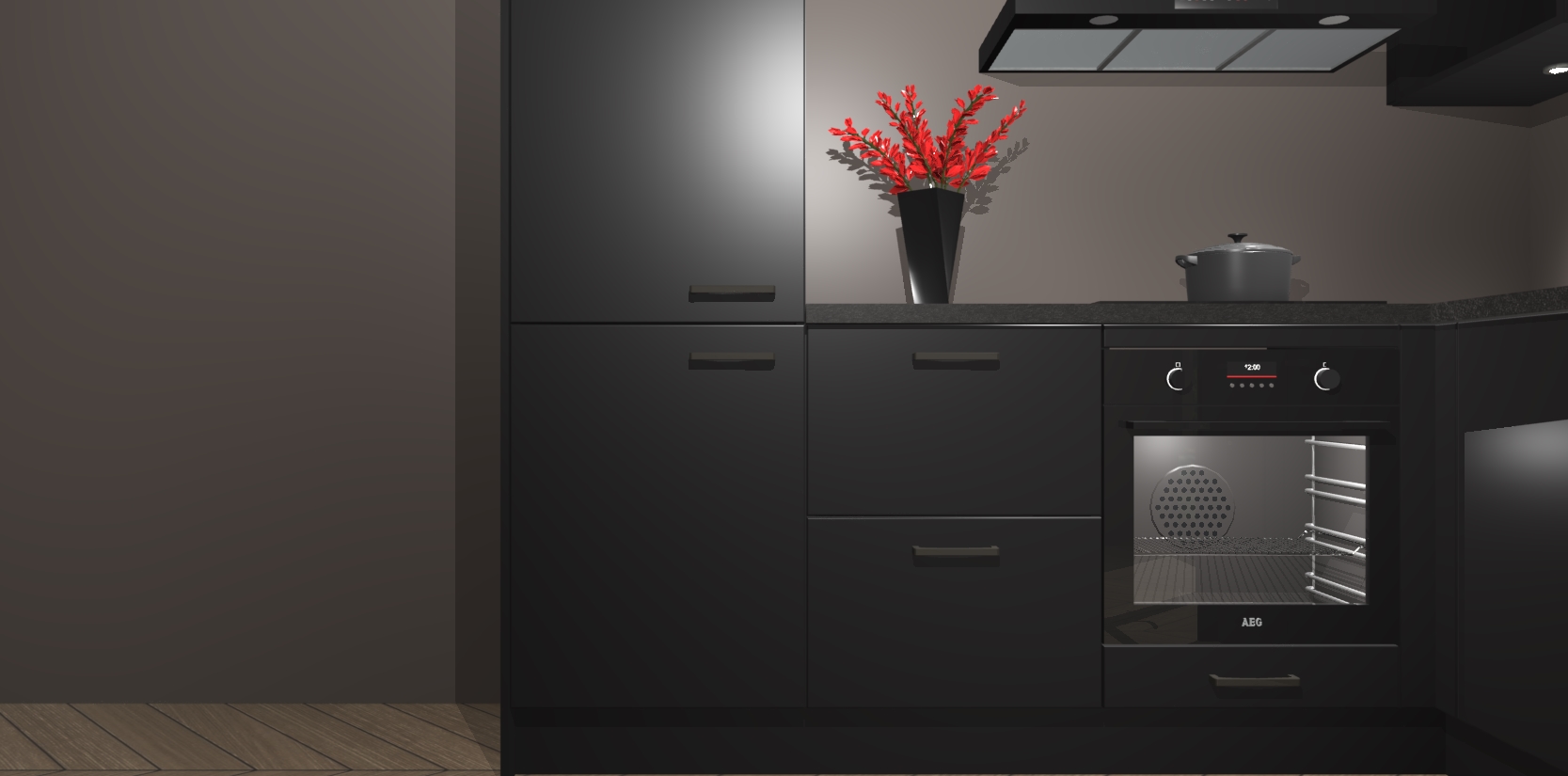 Wauw, dit is de Zwarte keuken Pilsen! U kunt gerust zeggen dat u elegantie combineert met functionaliteit met deze keuken. Met een modern en chique ontwerp is de keuken precies wat u nodig heeft om uw ruimte te verfraaien. De binnenzijde van de kasten is in dezelfde donkere kleur als de buitenzijde voor een uniforme look, compleet met softclose-kasten die stil sluiten.