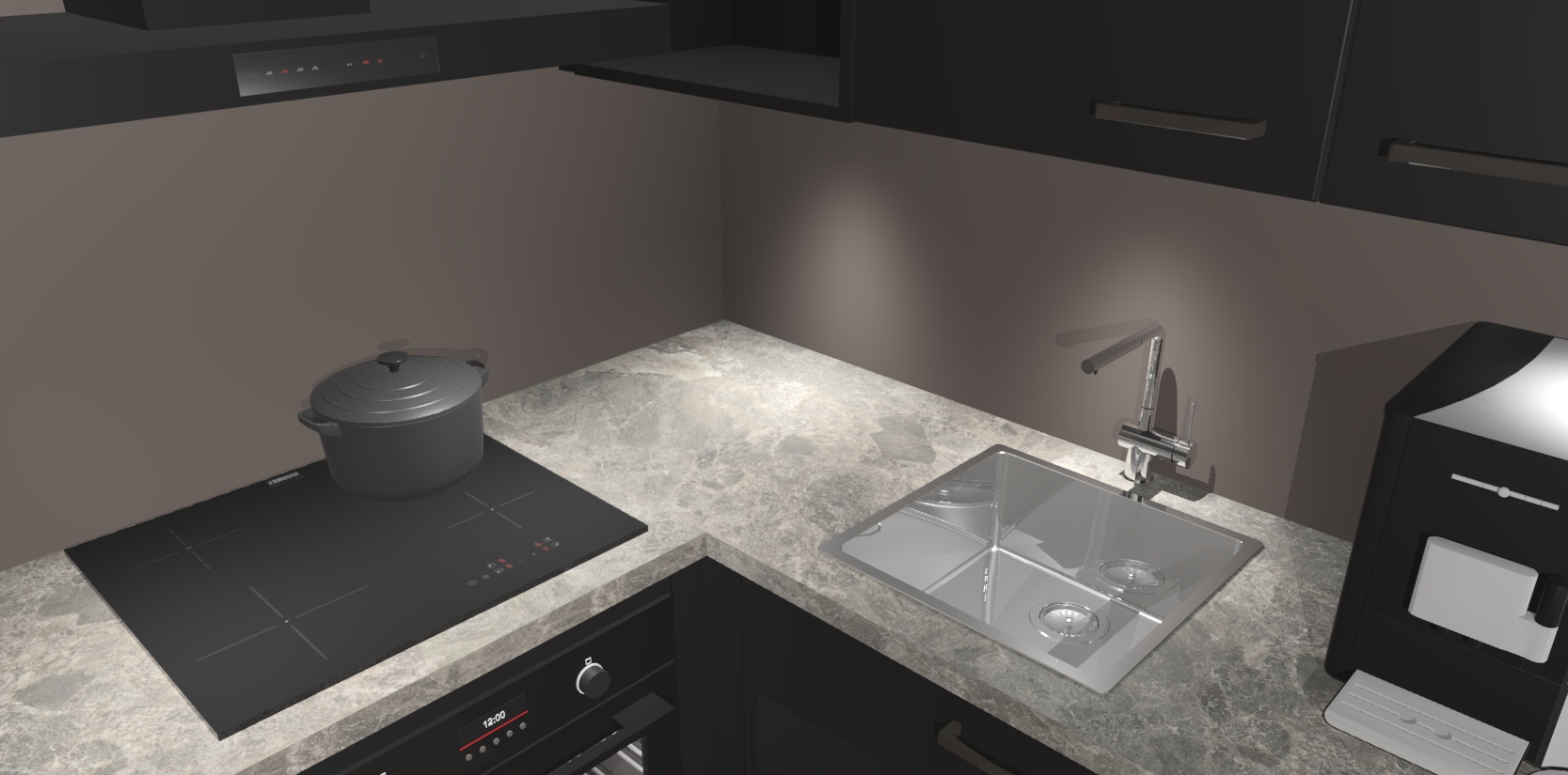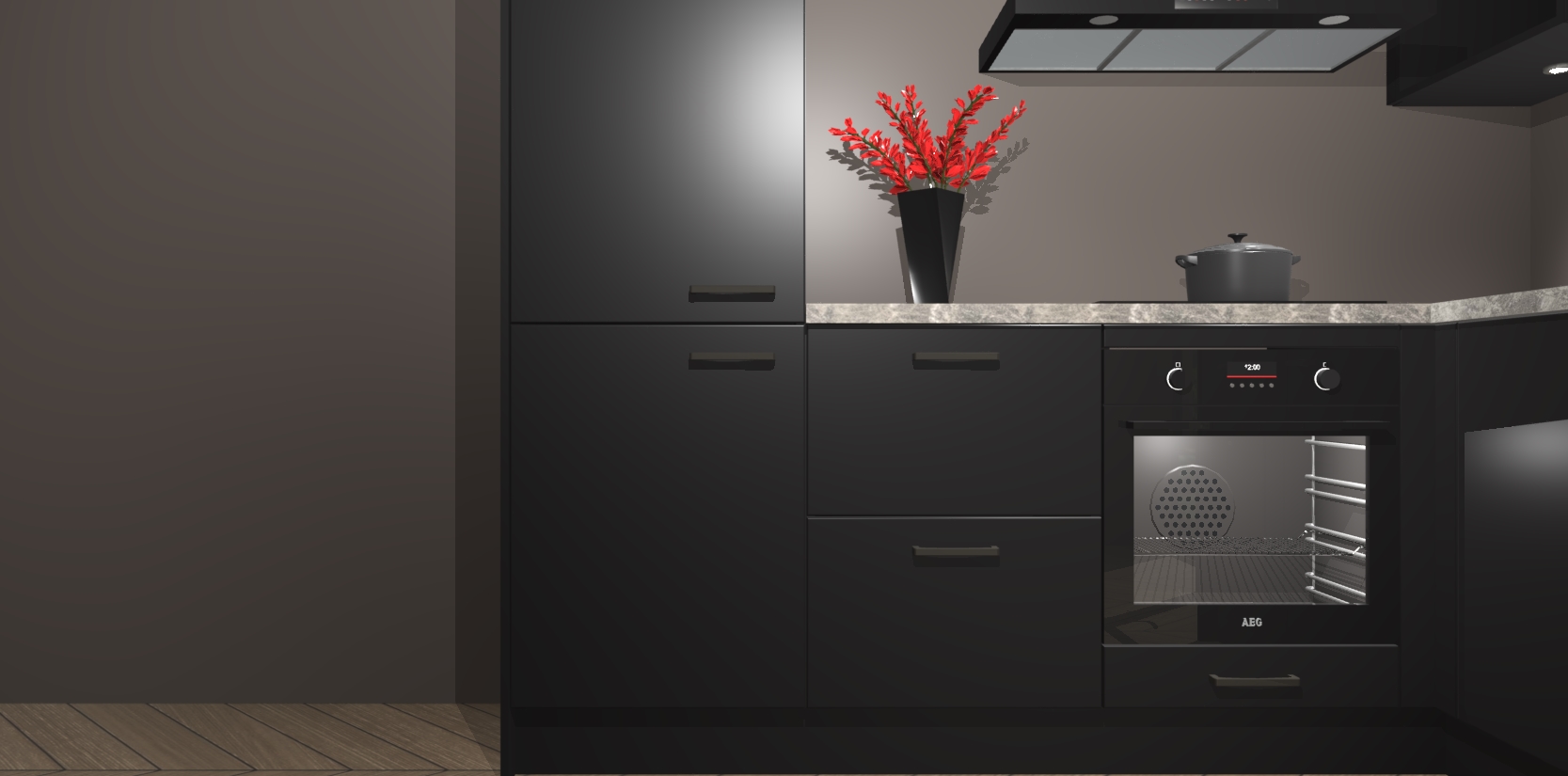Wauw, dit is de Zwarte keuken Pilsen! U kunt gerust zeggen dat u elegantie combineert met functionaliteit met deze keuken. Met een modern en chique ontwerp is de keuken precies wat u nodig heeft om uw ruimte te verfraaien. De binnenzijde van de kasten is in dezelfde donkere kleur als de buitenzijde voor een uniforme look, compleet met softclose-kasten die stil sluiten.
