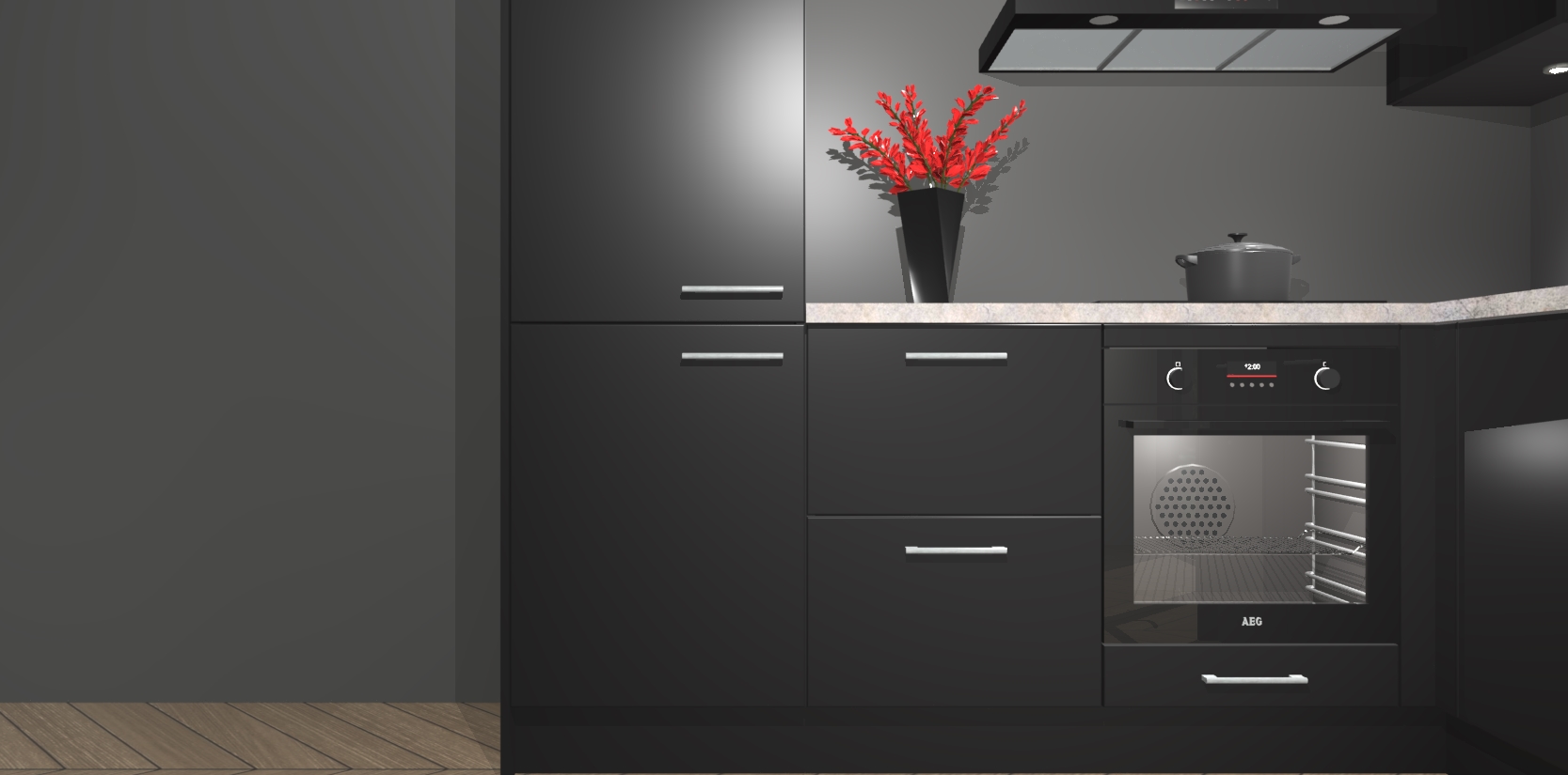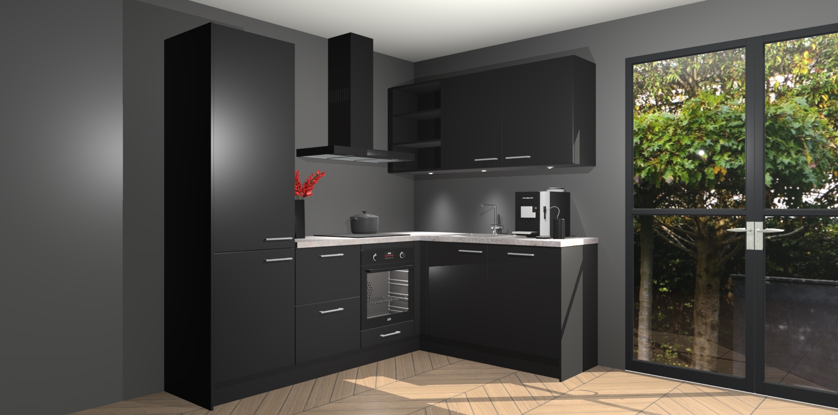 Wauw, dit is de Zwarte keuken Pilsen! U kunt gerust zeggen dat u elegantie combineert met functionaliteit met deze keuken. Met een modern en chique ontwerp is de keuken precies wat u nodig heeft om uw ruimte te verfraaien. De binnenzijde van de kasten is in dezelfde donkere kleur als de buitenzijde voor een uniforme look, compleet met softclose-kasten die stil sluiten.