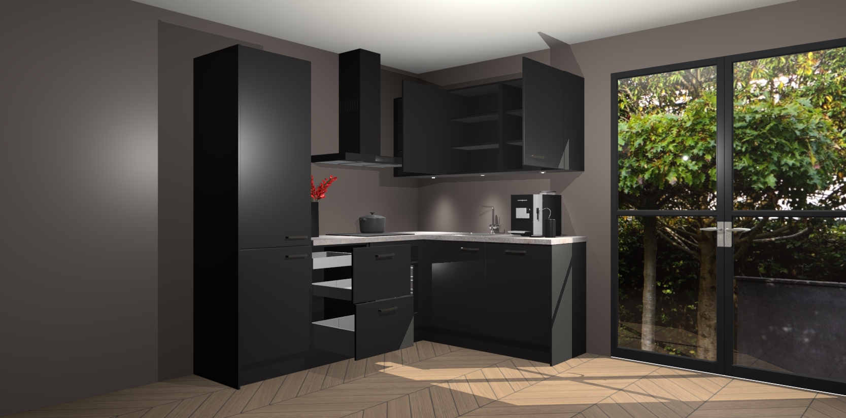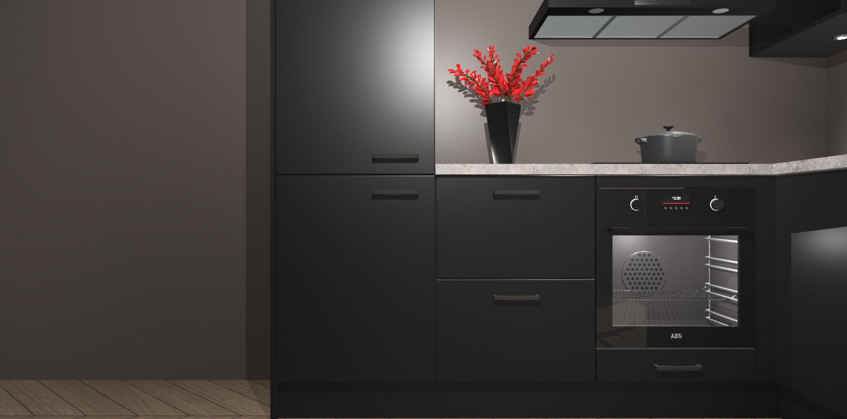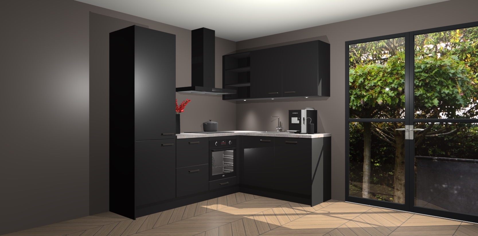 Wauw, dit is de Zwarte keuken Pilsen! U kunt gerust zeggen dat u elegantie combineert met functionaliteit met deze keuken. Met een modern en chique ontwerp is de keuken precies wat u nodig heeft om uw ruimte te verfraaien. De binnenzijde van de kasten is in dezelfde donkere kleur als de buitenzijde voor een uniforme look, compleet met softclose-kasten die stil sluiten.