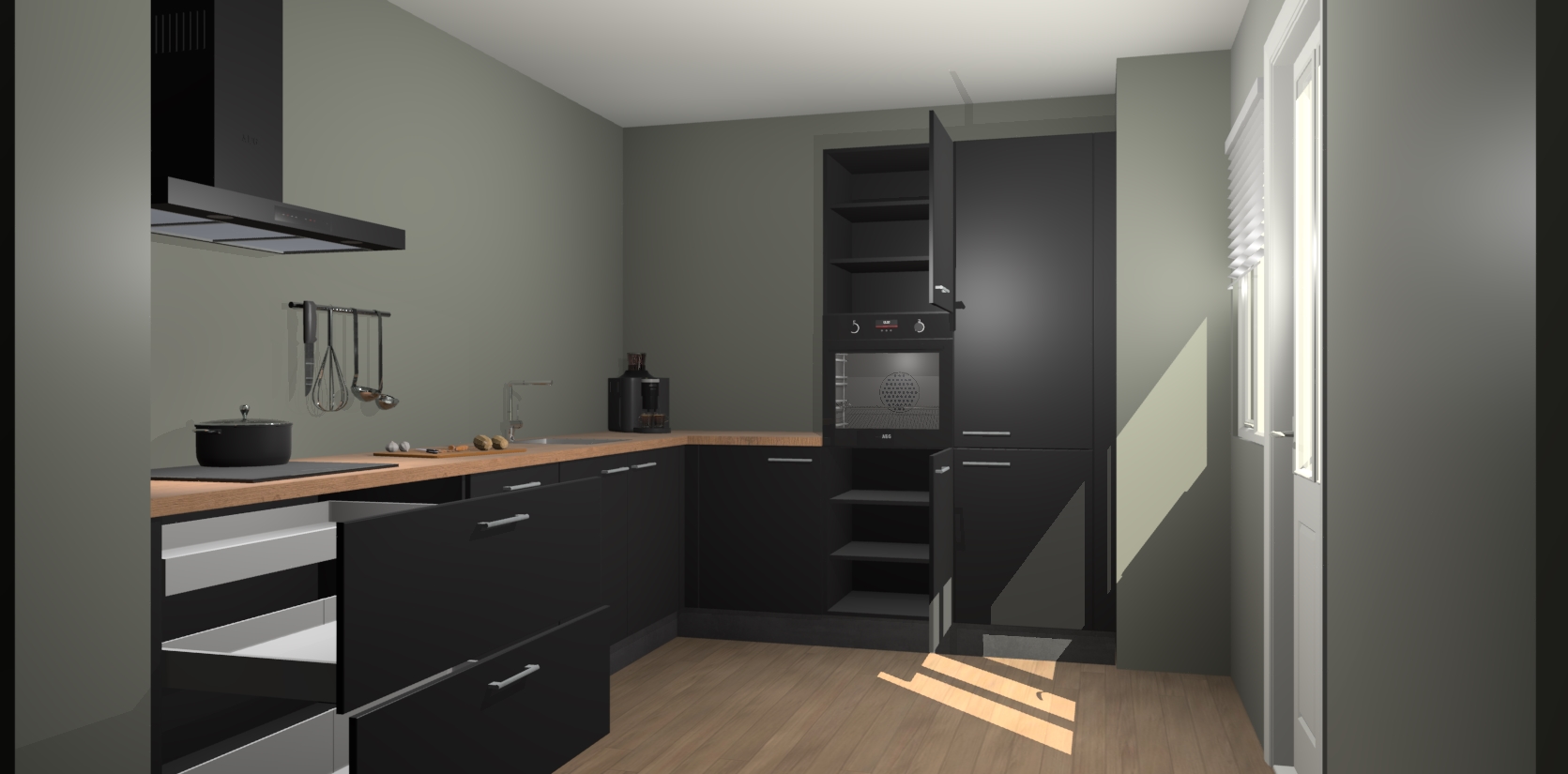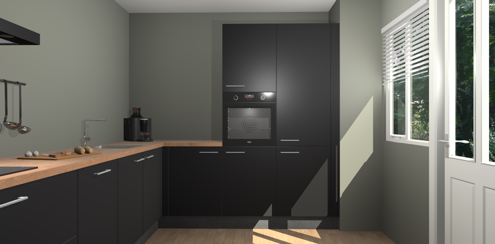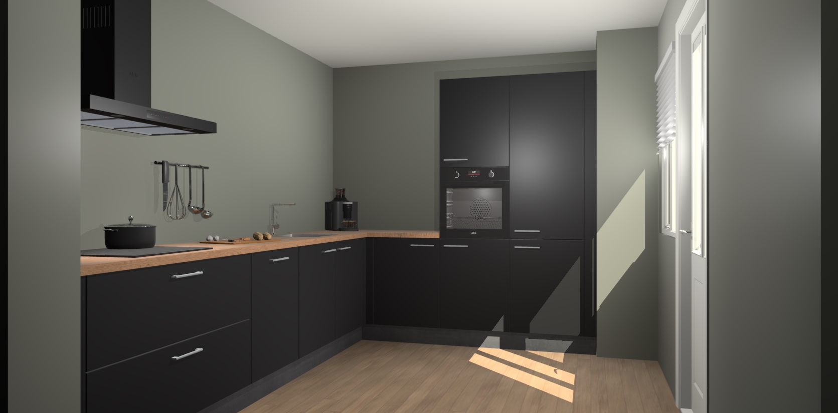 Welkom bij de Zwarte keuken Portland. Deze prachtige keuken zal de komende jaren het middelpunt van de belangstelling in uw huis zijn. Uitgerust met vijf inbouwapparaten komt u nooit kookgereedschap tekort. Bovendien geeft de warme houtlook elke ruimte een uitnodigende en tijdloze uitstraling.
