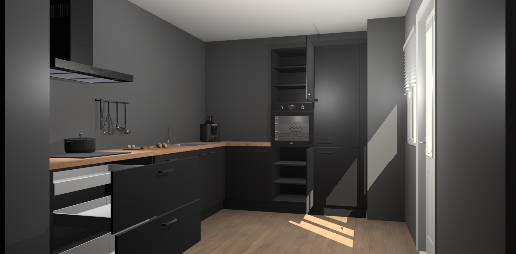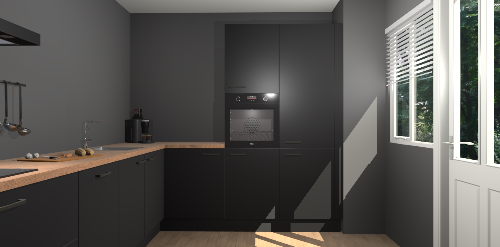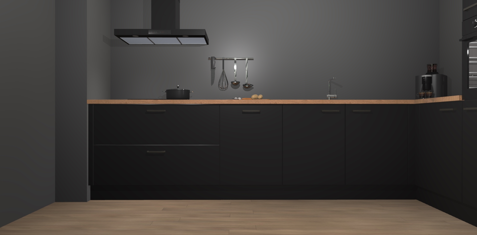 Welkom bij de Zwarte keuken Portland. Deze prachtige keuken zal de komende jaren het middelpunt van de belangstelling in uw huis zijn. Uitgerust met vijf inbouwapparaten komt u nooit kookgereedschap tekort. Bovendien geeft de warme houtlook elke ruimte een uitnodigende en tijdloze uitstraling.