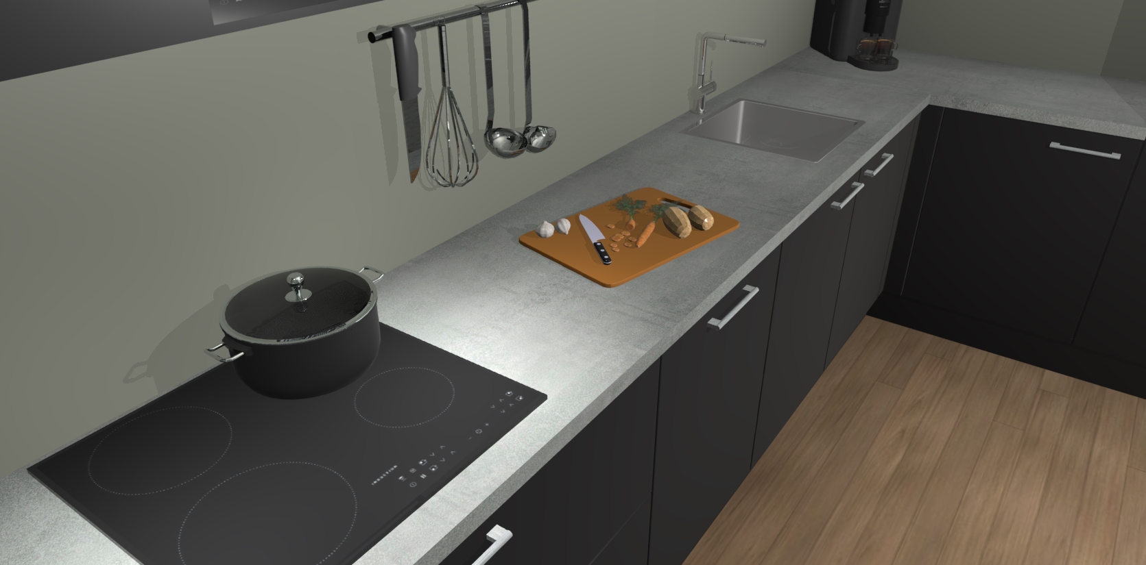 Inclusief plinten, stelpoten en werkblad