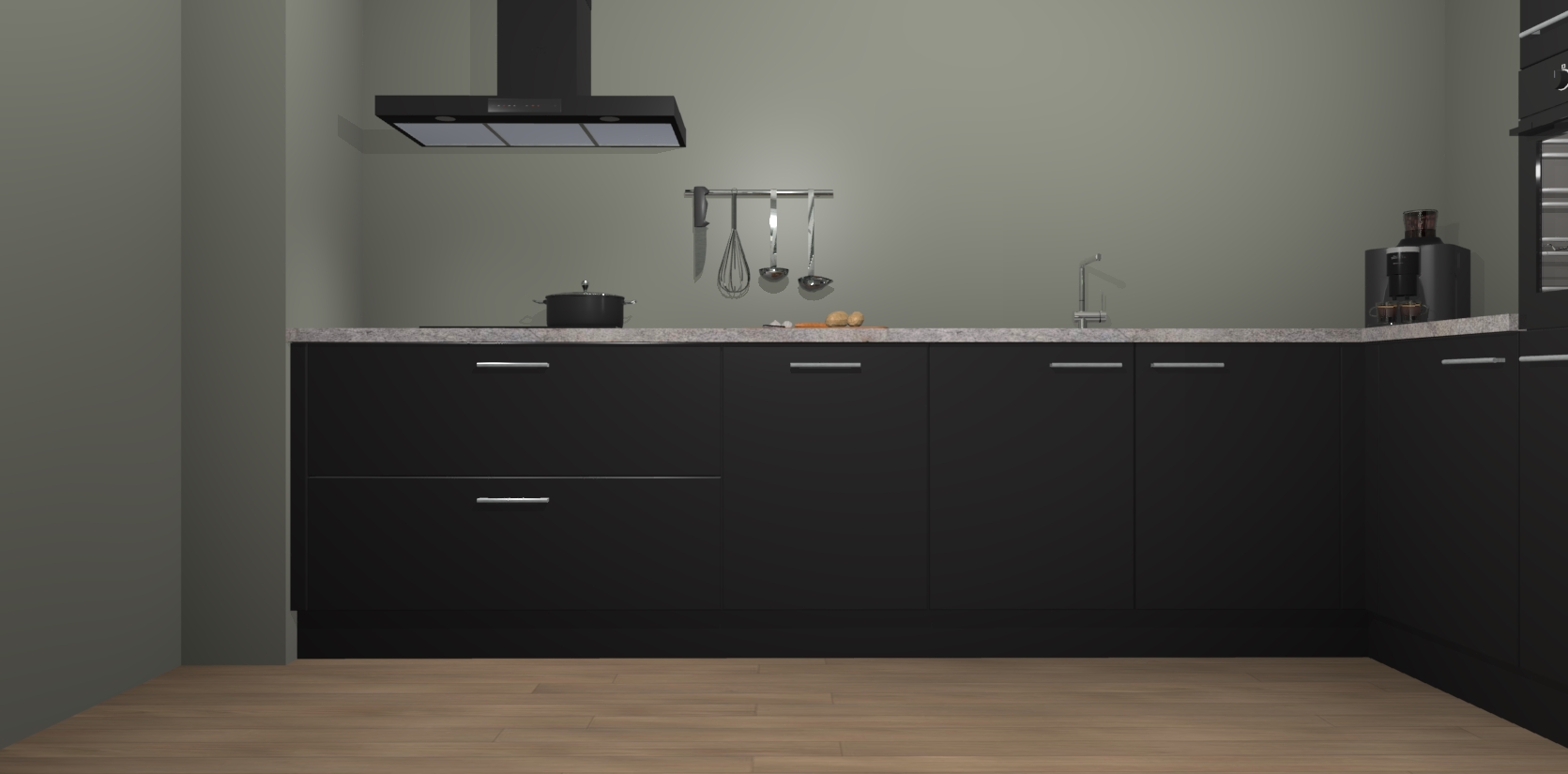 Welkom bij de Zwarte keuken Portland. Deze prachtige keuken zal de komende jaren het middelpunt van de belangstelling in uw huis zijn. Uitgerust met vijf inbouwapparaten komt u nooit kookgereedschap tekort. Bovendien geeft de warme houtlook elke ruimte een uitnodigende en tijdloze uitstraling.