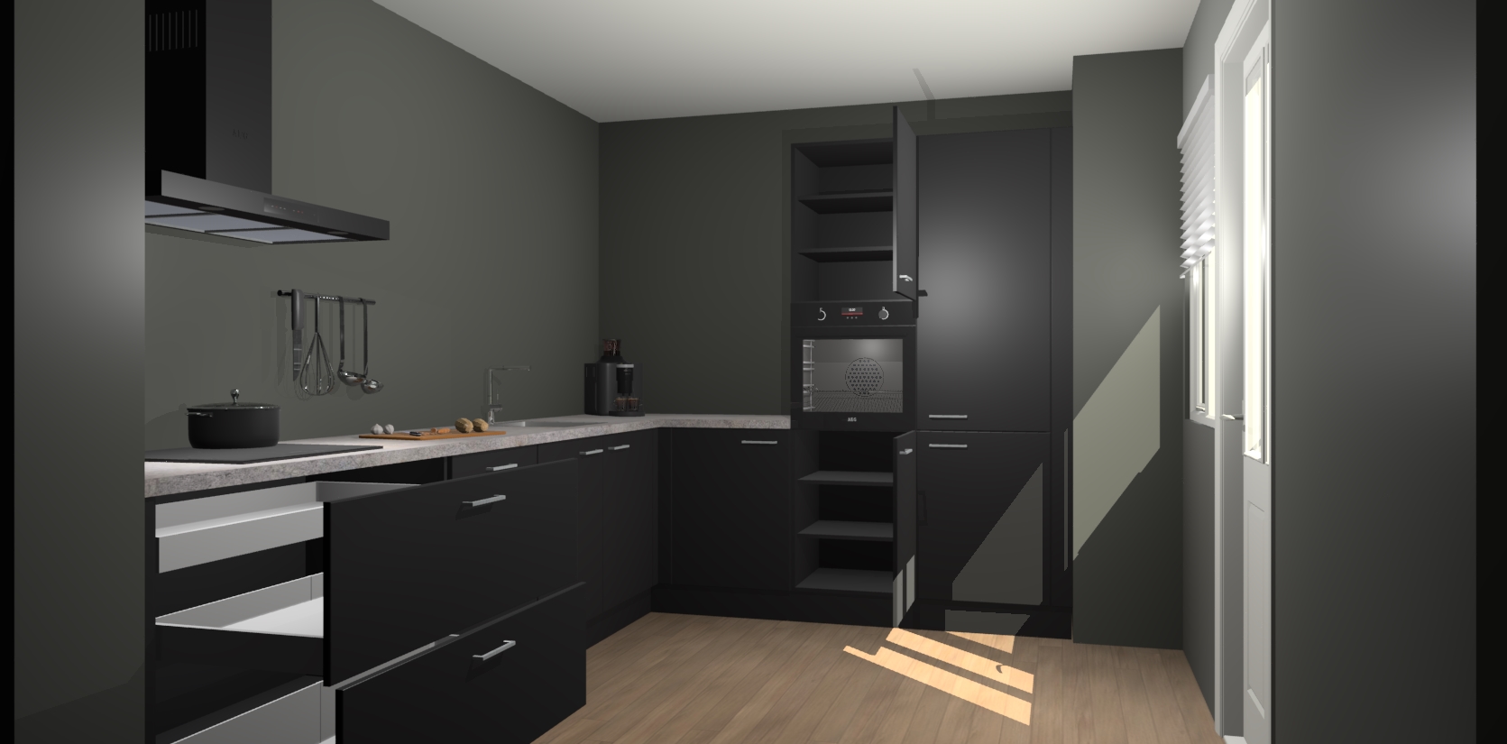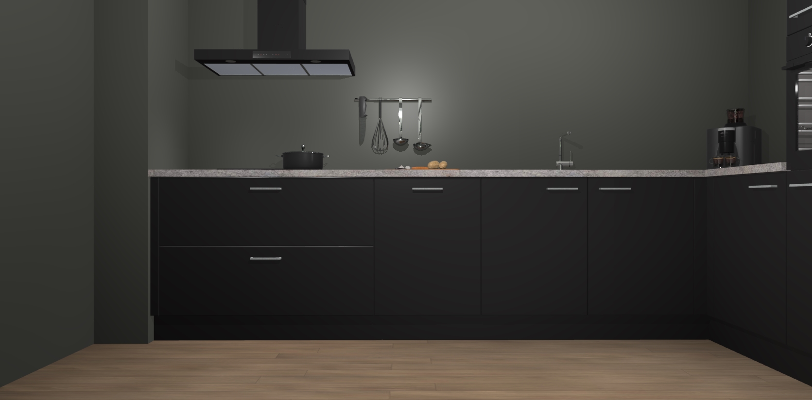 Welkom bij de Zwarte keuken Portland. Deze prachtige keuken zal de komende jaren het middelpunt van de belangstelling in uw huis zijn. Uitgerust met vijf inbouwapparaten komt u nooit kookgereedschap tekort. Bovendien geeft de warme houtlook elke ruimte een uitnodigende en tijdloze uitstraling.