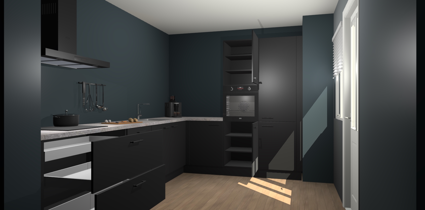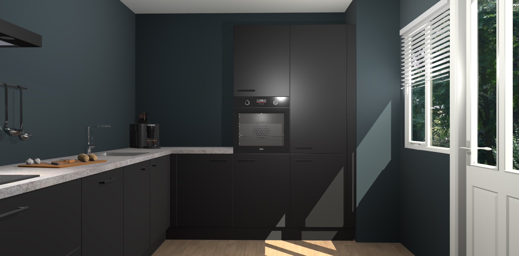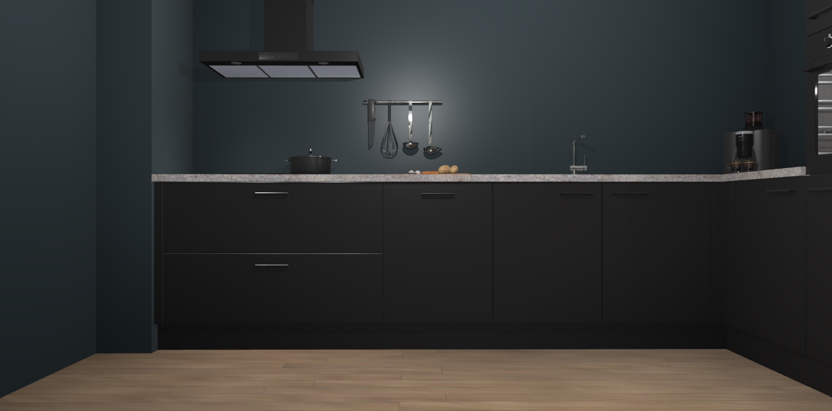 Welkom bij de Zwarte keuken Portland. Deze prachtige keuken zal de komende jaren het middelpunt van de belangstelling in uw huis zijn. Uitgerust met vijf inbouwapparaten komt u nooit kookgereedschap tekort. Bovendien geeft de warme houtlook elke ruimte een uitnodigende en tijdloze uitstraling.