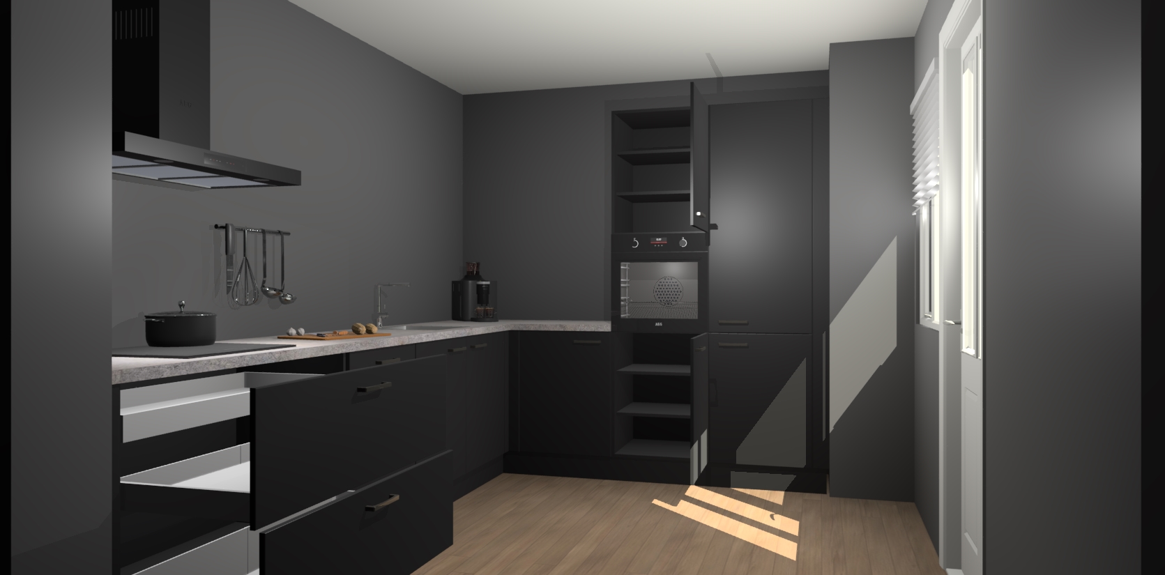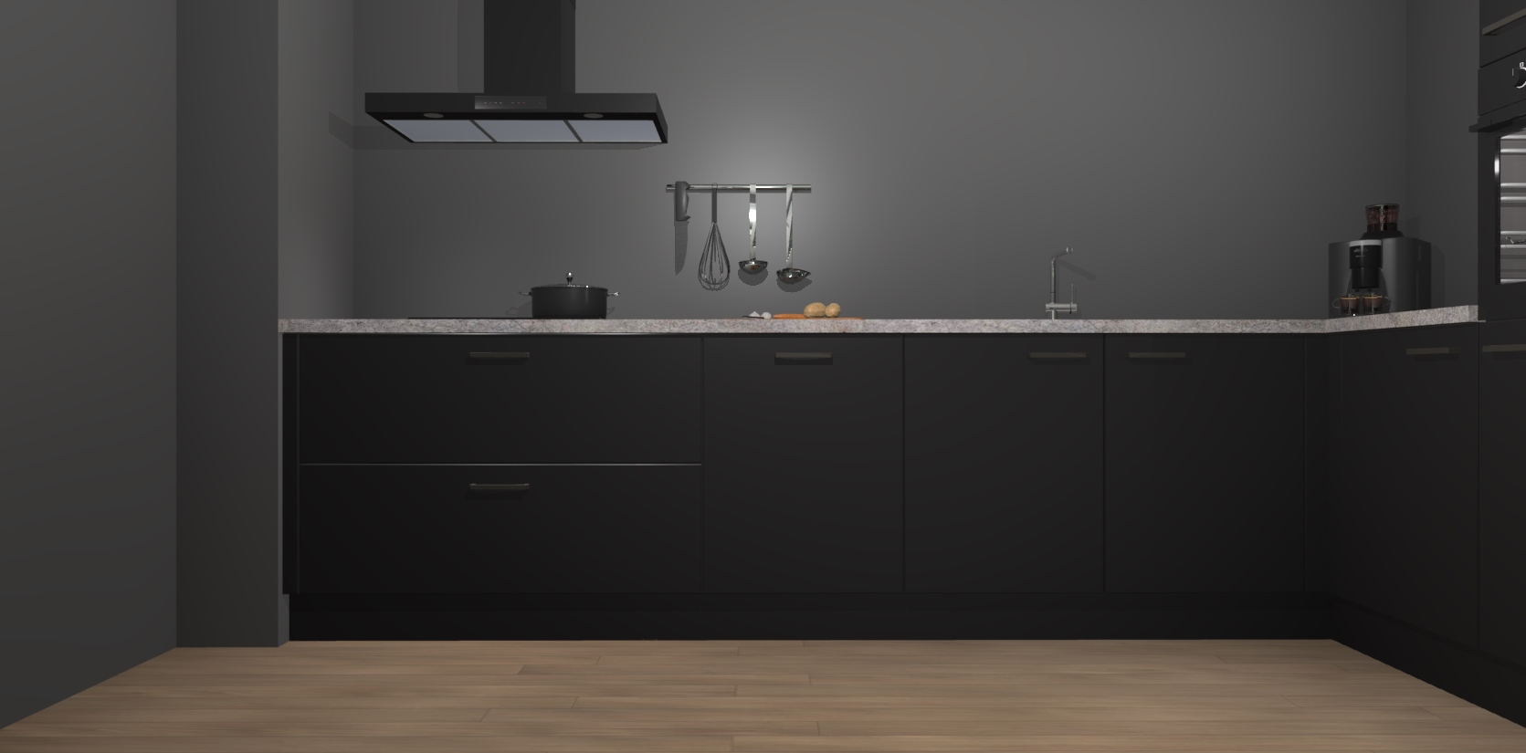 Welkom bij de Zwarte keuken Portland. Deze prachtige keuken zal de komende jaren het middelpunt van de belangstelling in uw huis zijn. Uitgerust met vijf inbouwapparaten komt u nooit kookgereedschap tekort. Bovendien geeft de warme houtlook elke ruimte een uitnodigende en tijdloze uitstraling.