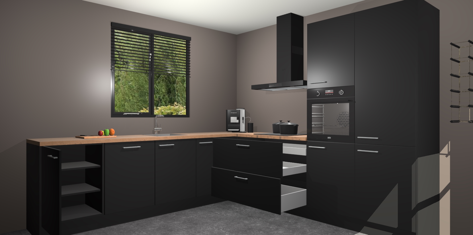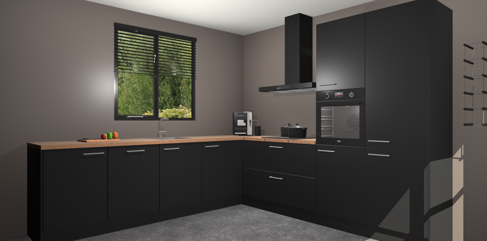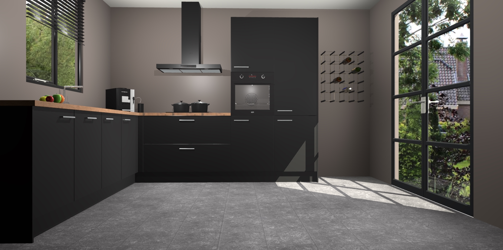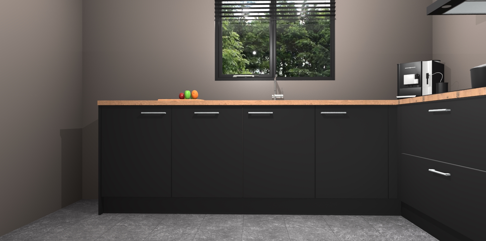De Zwarte keuken Porto heeft 5 ingebouwde apparaten - een oven, inductiekookplaat, afzuigkap, vaatwasser en koelkast - waarmee u in een handomdraai heerlijke gerechten bereidt. Soft-close deuren zorgen voor nog meer functionaliteit en gemak. En dit alles voor een onverslaanbaar vaste prijs. En als u nu bestelt, duurt de levering maar 7 weken! Wat nog ongelooflijker is, is dat onze kasten voor gemonteerd worden geleverd.