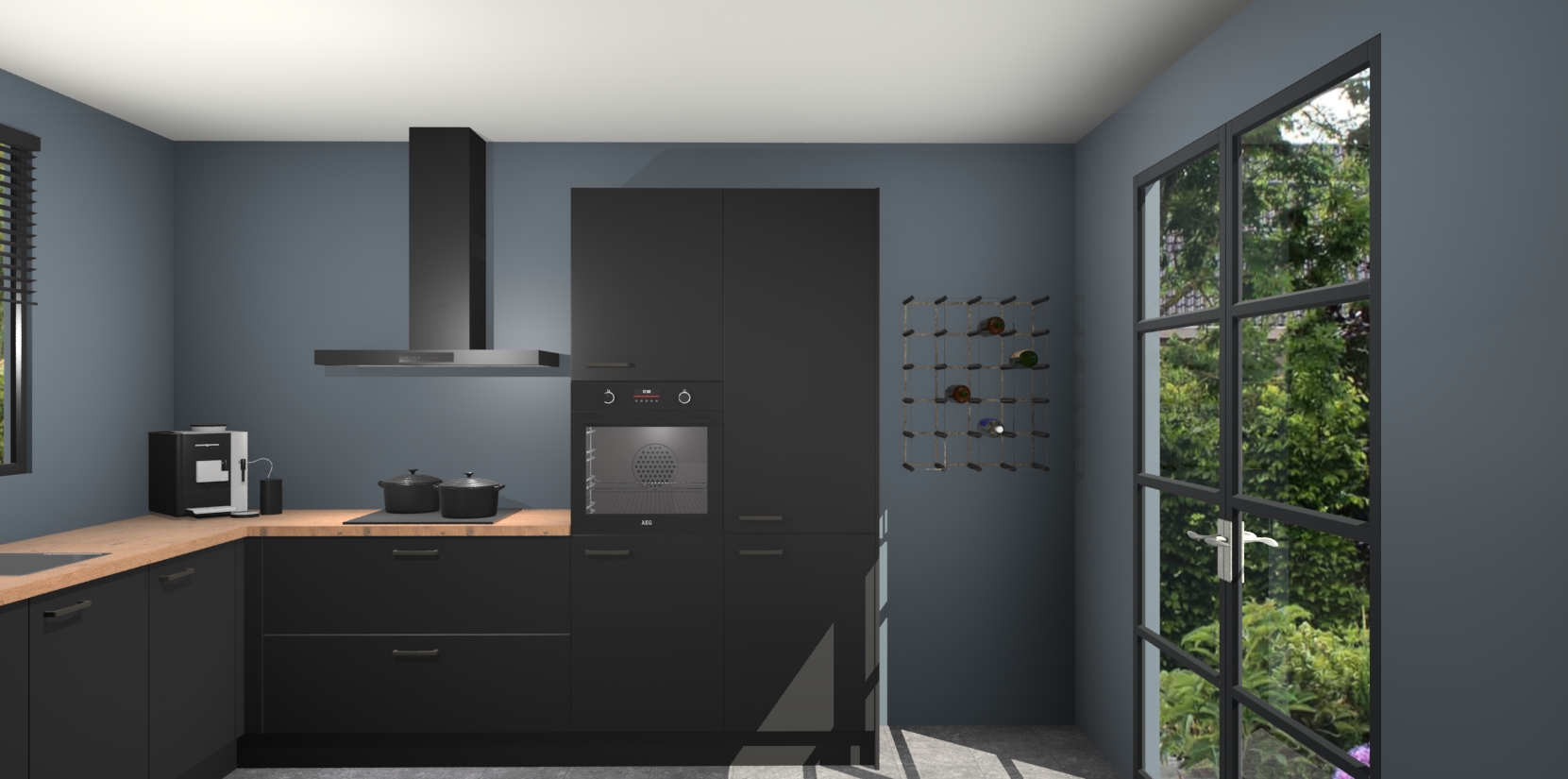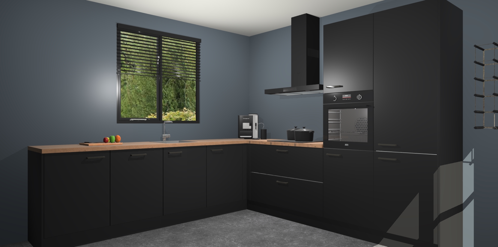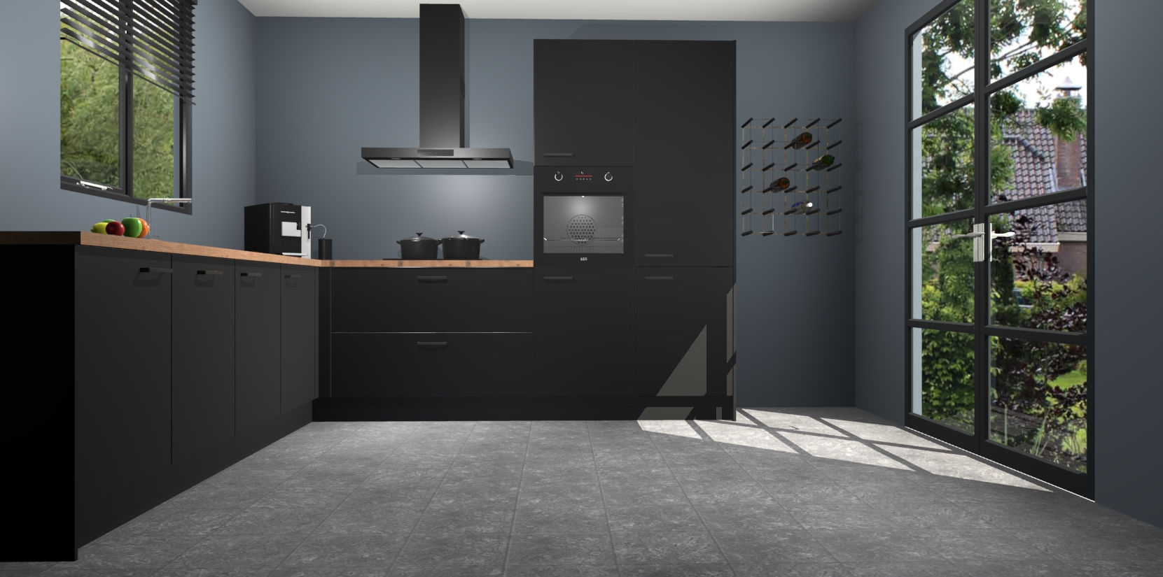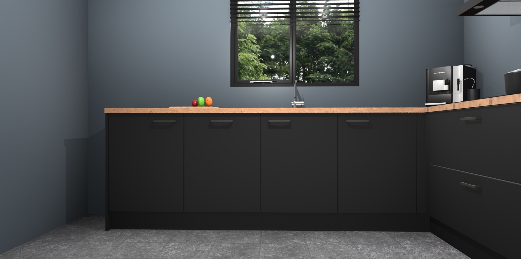 De Zwarte keuken Porto heeft 5 ingebouwde apparaten - een oven, inductiekookplaat, afzuigkap, vaatwasser en koelkast - waarmee u in een handomdraai heerlijke gerechten bereidt. Soft-close deuren zorgen voor nog meer functionaliteit en gemak. En dit alles voor een onverslaanbaar vaste prijs. En als u nu bestelt, duurt de levering maar 7 weken! Wat nog ongelooflijker is, is dat onze kasten voor gemonteerd worden geleverd.