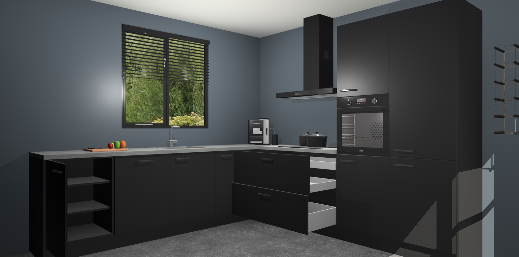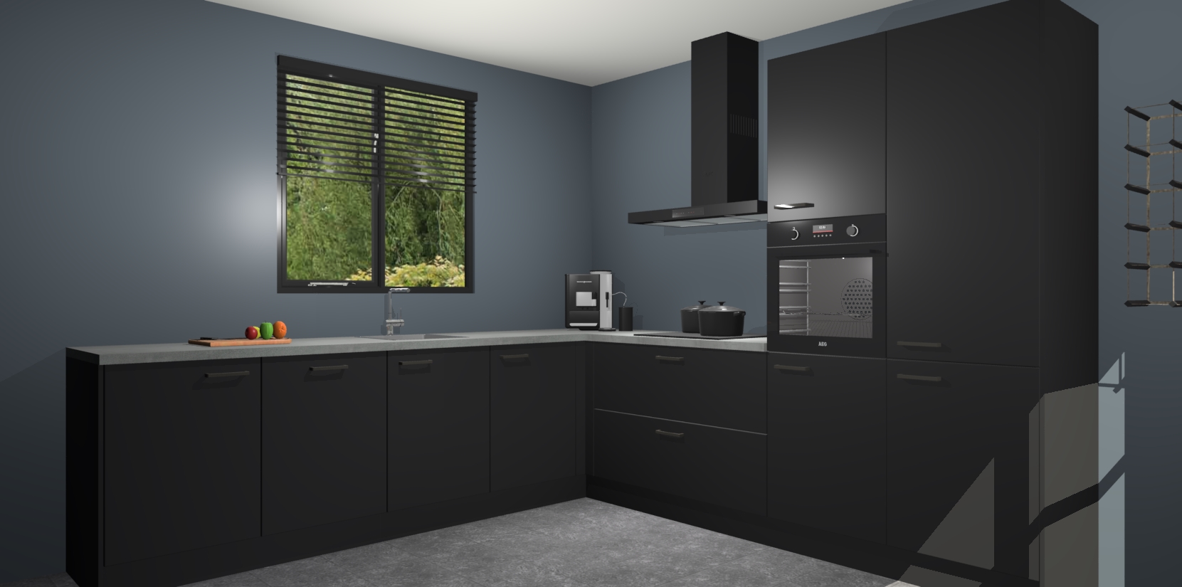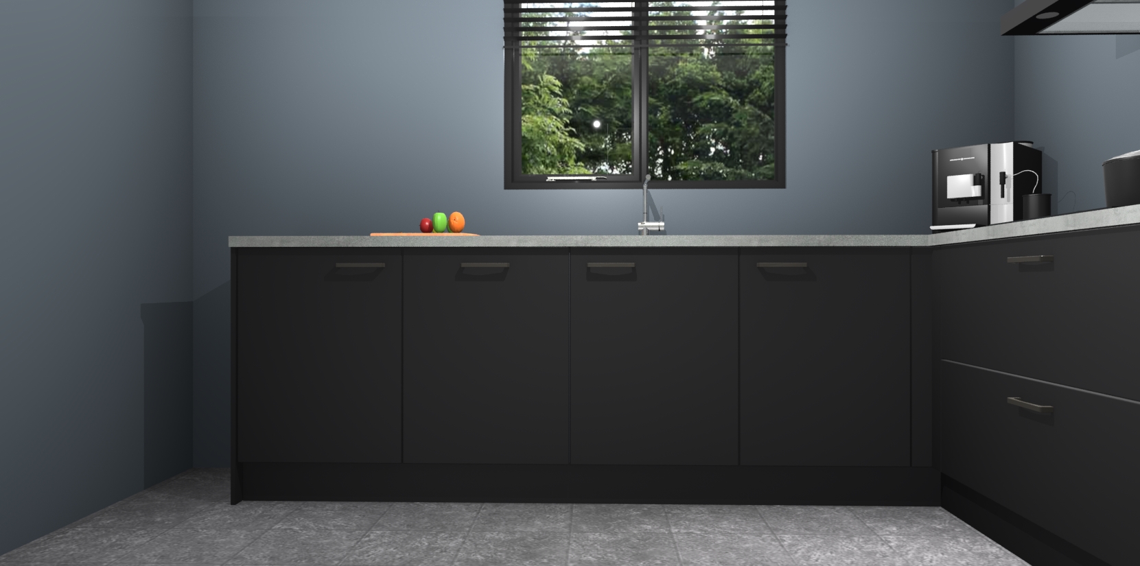 De Zwarte keuken Porto heeft 5 ingebouwde apparaten - een oven, inductiekookplaat, afzuigkap, vaatwasser en koelkast - waarmee u in een handomdraai heerlijke gerechten bereidt. Soft-close deuren zorgen voor nog meer functionaliteit en gemak. En dit alles voor een onverslaanbaar vaste prijs. En als u nu bestelt, duurt de levering maar 7 weken! Wat nog ongelooflijker is, is dat onze kasten voor gemonteerd worden geleverd.