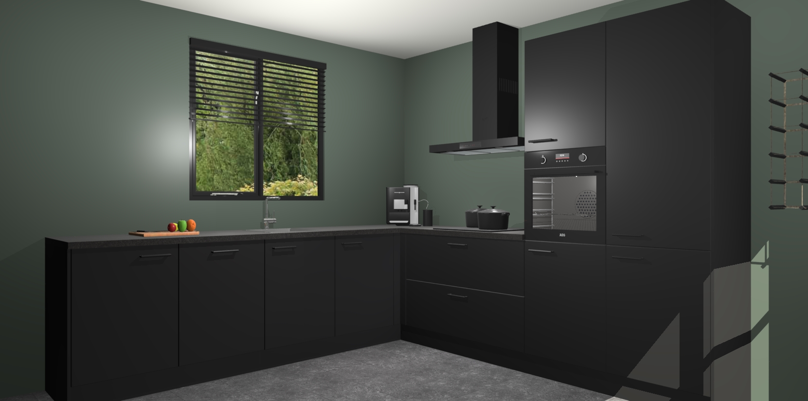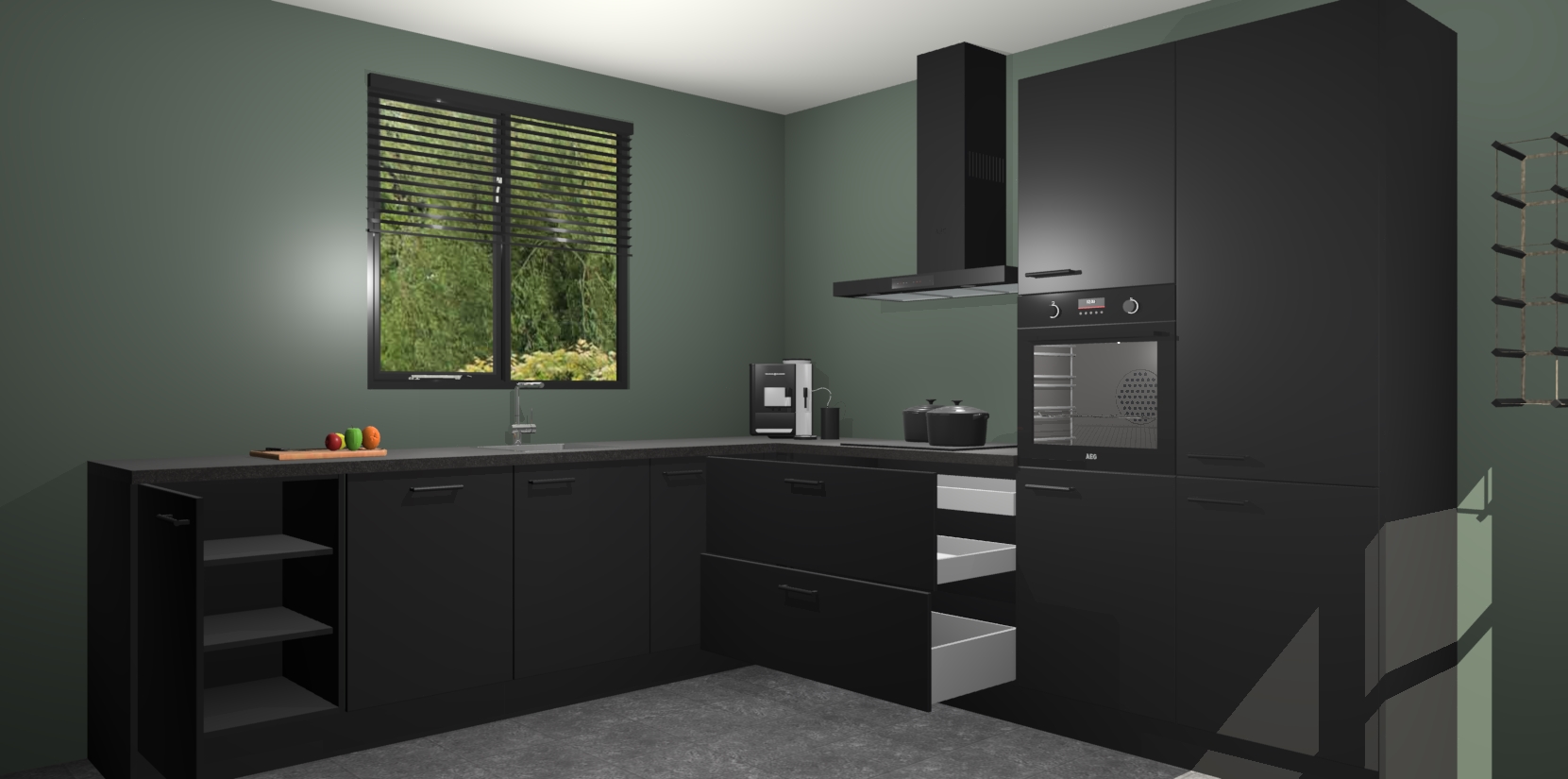 De Zwarte keuken Porto heeft 5 ingebouwde apparaten - een oven, inductiekookplaat, afzuigkap, vaatwasser en koelkast - waarmee u in een handomdraai heerlijke gerechten bereidt. Soft-close deuren zorgen voor nog meer functionaliteit en gemak. En dit alles voor een onverslaanbaar vaste prijs. En als u nu bestelt, duurt de levering maar 7 weken! Wat nog ongelooflijker is, is dat onze kasten voor gemonteerd worden geleverd.