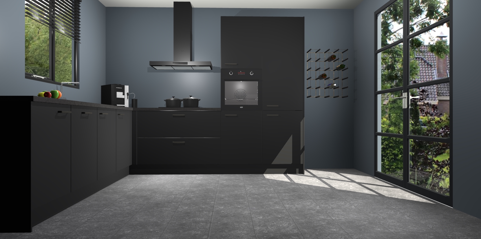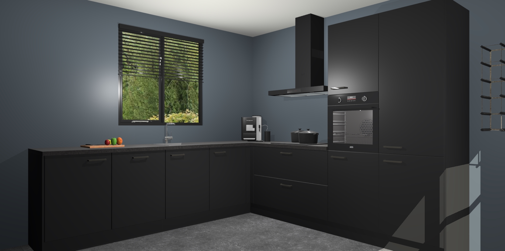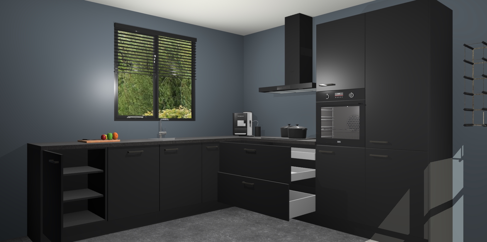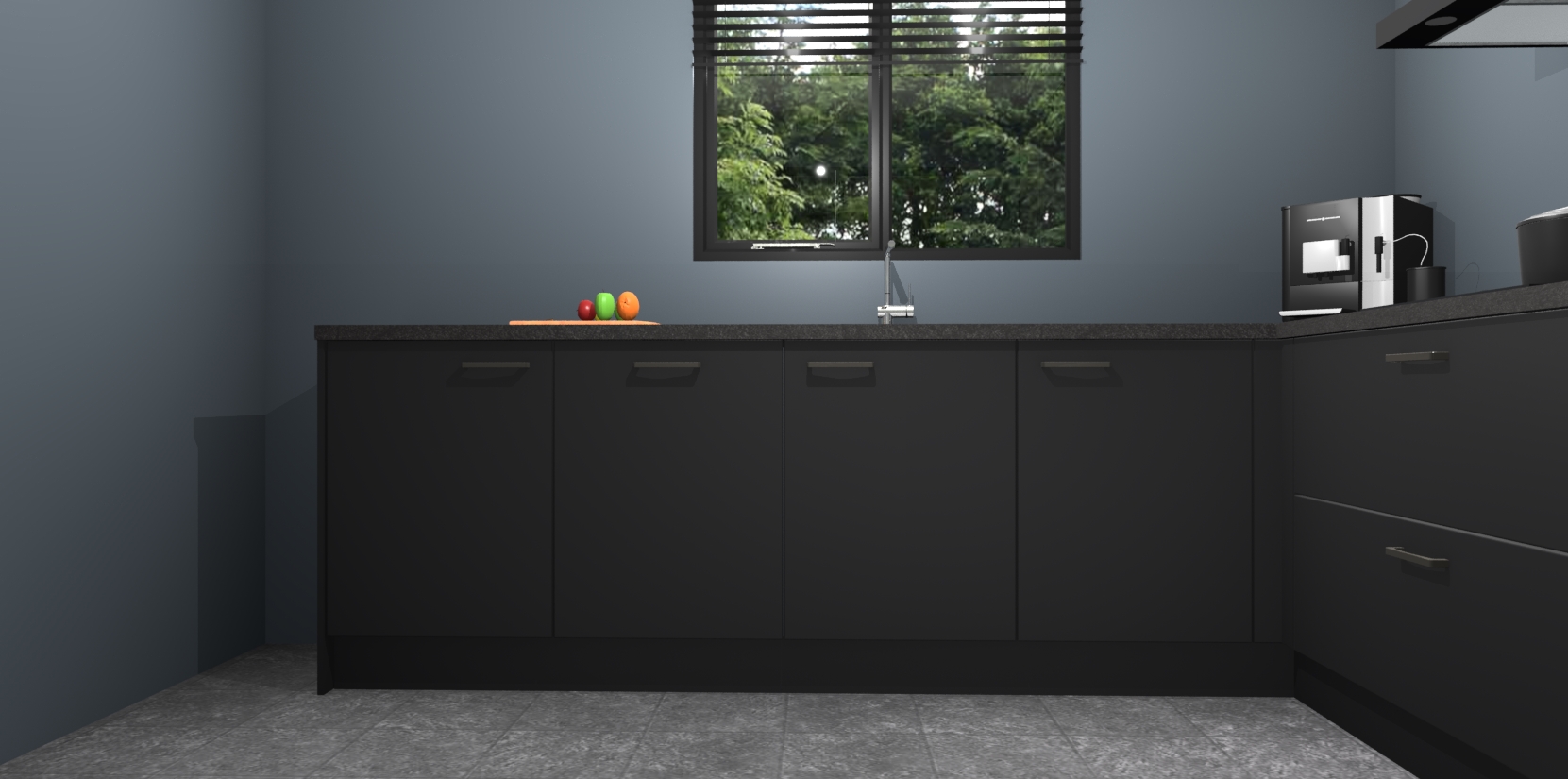 De Zwarte keuken Porto heeft 5 ingebouwde apparaten - een oven, inductiekookplaat, afzuigkap, vaatwasser en koelkast - waarmee u in een handomdraai heerlijke gerechten bereidt. Soft-close deuren zorgen voor nog meer functionaliteit en gemak. En dit alles voor een onverslaanbaar vaste prijs. En als u nu bestelt, duurt de levering maar 7 weken! Wat nog ongelooflijker is, is dat onze kasten voor gemonteerd worden geleverd.