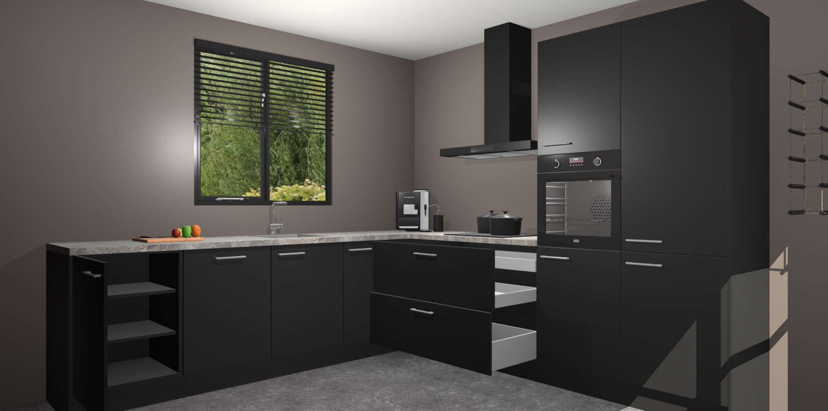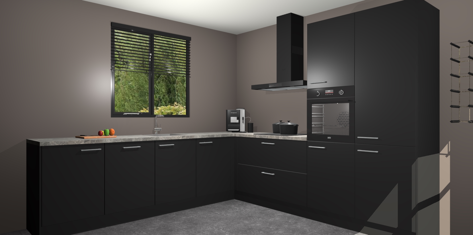 De Zwarte keuken Porto heeft 5 ingebouwde apparaten - een oven, inductiekookplaat, afzuigkap, vaatwasser en koelkast - waarmee u in een handomdraai heerlijke gerechten bereidt. Soft-close deuren zorgen voor nog meer functionaliteit en gemak. En dit alles voor een onverslaanbaar vaste prijs. En als u nu bestelt, duurt de levering maar 7 weken! Wat nog ongelooflijker is, is dat onze kasten voor gemonteerd worden geleverd.