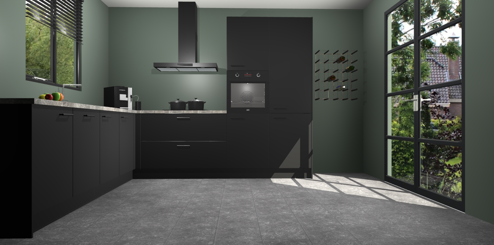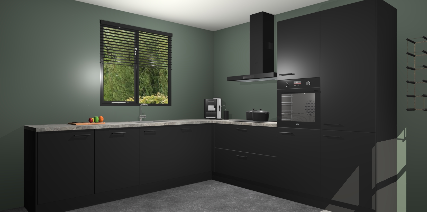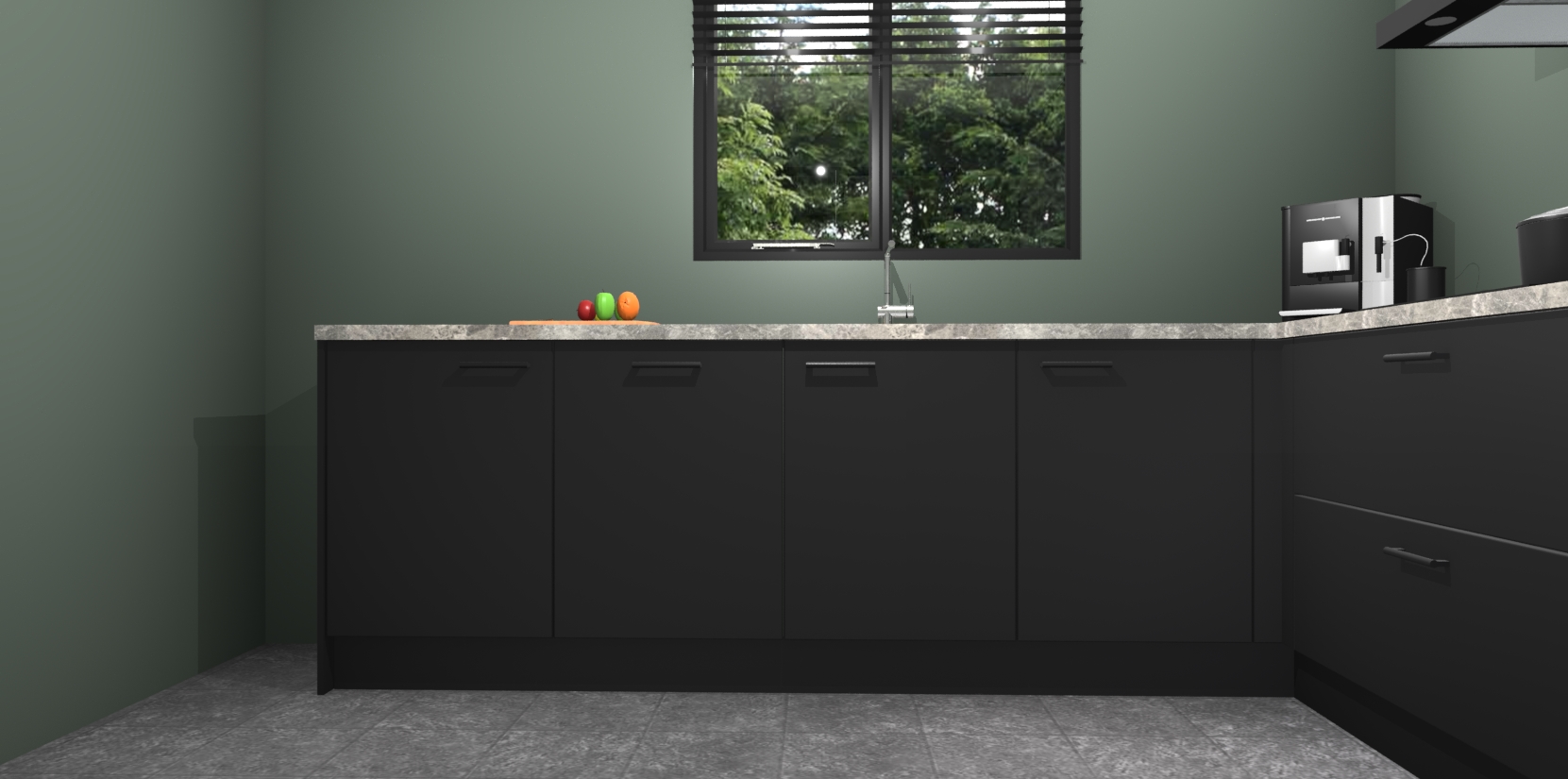 De Zwarte keuken Porto heeft 5 ingebouwde apparaten - een oven, inductiekookplaat, afzuigkap, vaatwasser en koelkast - waarmee u in een handomdraai heerlijke gerechten bereidt. Soft-close deuren zorgen voor nog meer functionaliteit en gemak. En dit alles voor een onverslaanbaar vaste prijs. En als u nu bestelt, duurt de levering maar 7 weken! Wat nog ongelooflijker is, is dat onze kasten voor gemonteerd worden geleverd.