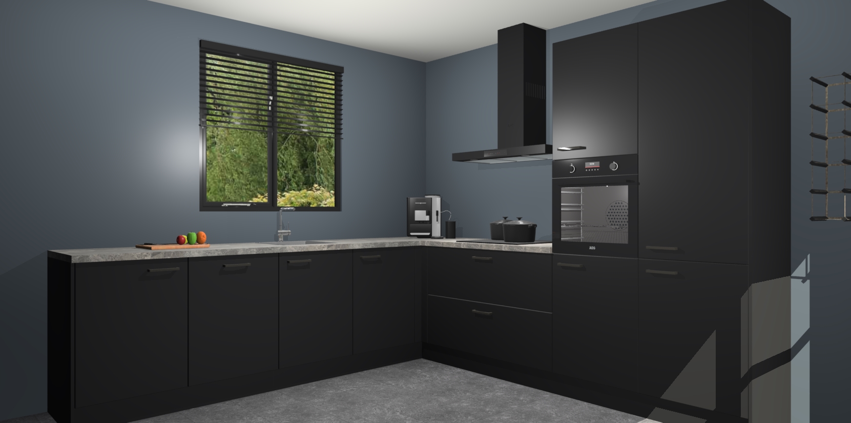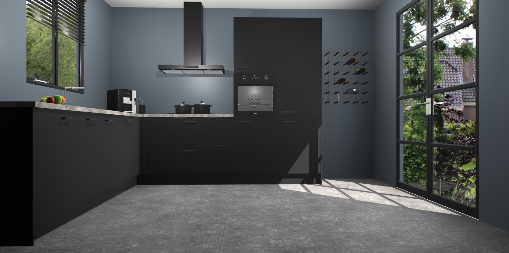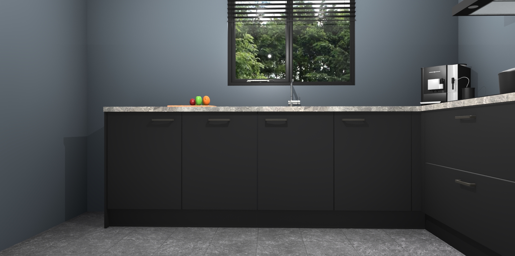 De Zwarte keuken Porto heeft 5 ingebouwde apparaten - een oven, inductiekookplaat, afzuigkap, vaatwasser en koelkast - waarmee u in een handomdraai heerlijke gerechten bereidt. Soft-close deuren zorgen voor nog meer functionaliteit en gemak. En dit alles voor een onverslaanbaar vaste prijs. En als u nu bestelt, duurt de levering maar 7 weken! Wat nog ongelooflijker is, is dat onze kasten voor gemonteerd worden geleverd.