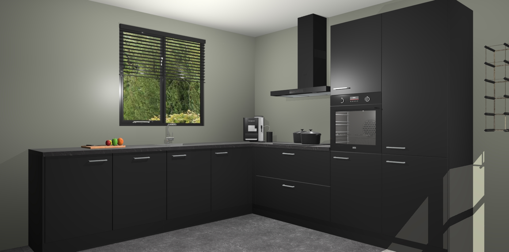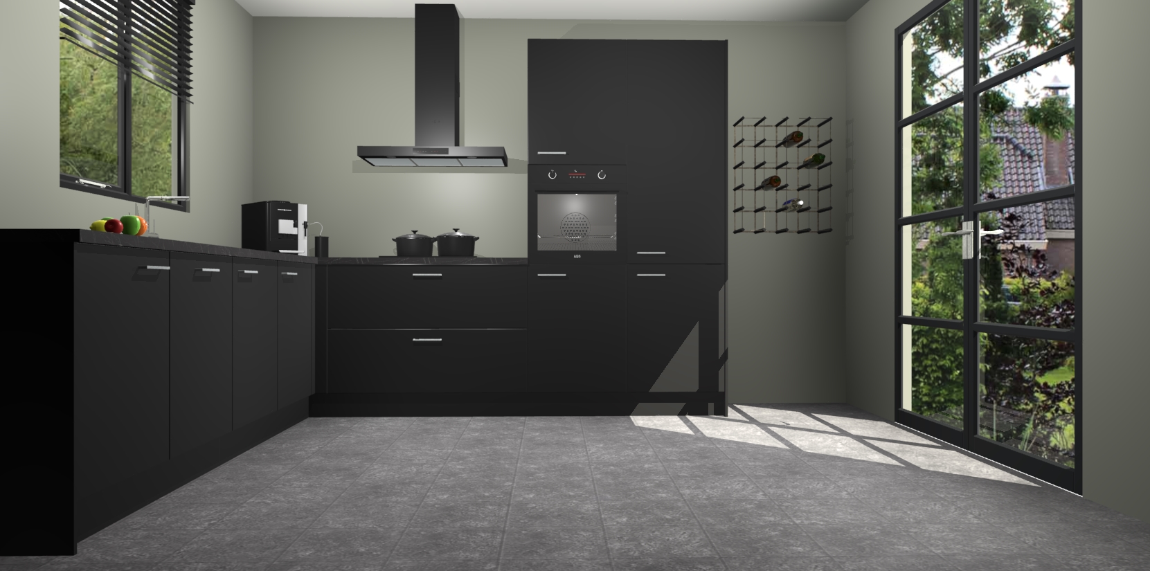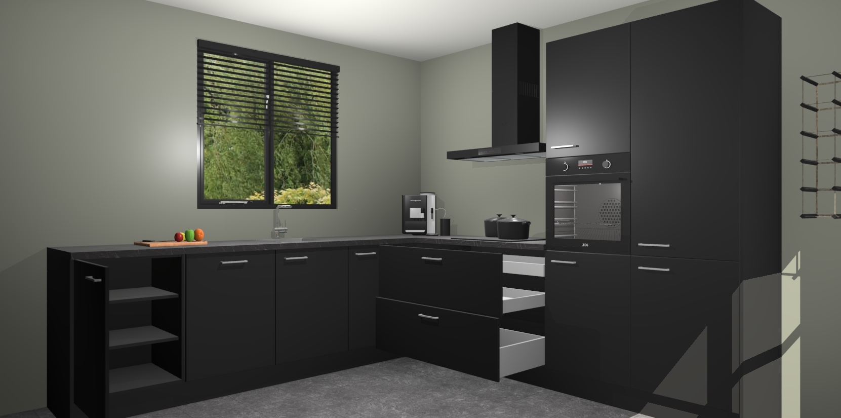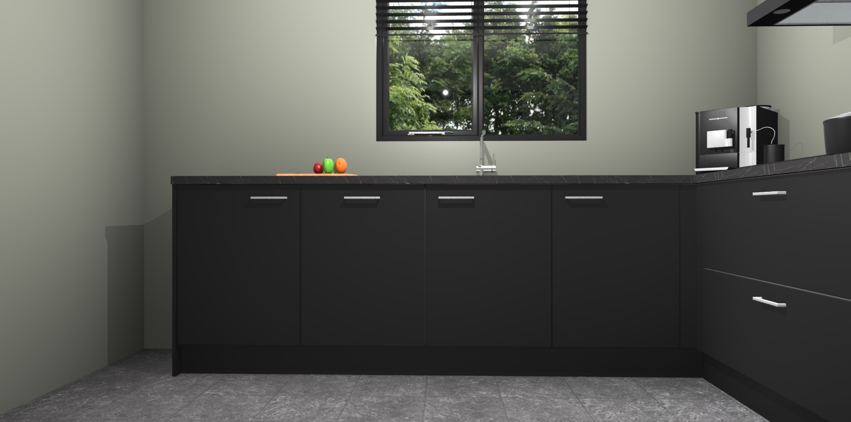 De Zwarte keuken Porto heeft 5 ingebouwde apparaten - een oven, inductiekookplaat, afzuigkap, vaatwasser en koelkast - waarmee u in een handomdraai heerlijke gerechten bereidt. Soft-close deuren zorgen voor nog meer functionaliteit en gemak. En dit alles voor een onverslaanbaar vaste prijs. En als u nu bestelt, duurt de levering maar 7 weken! Wat nog ongelooflijker is, is dat onze kasten voor gemonteerd worden geleverd.