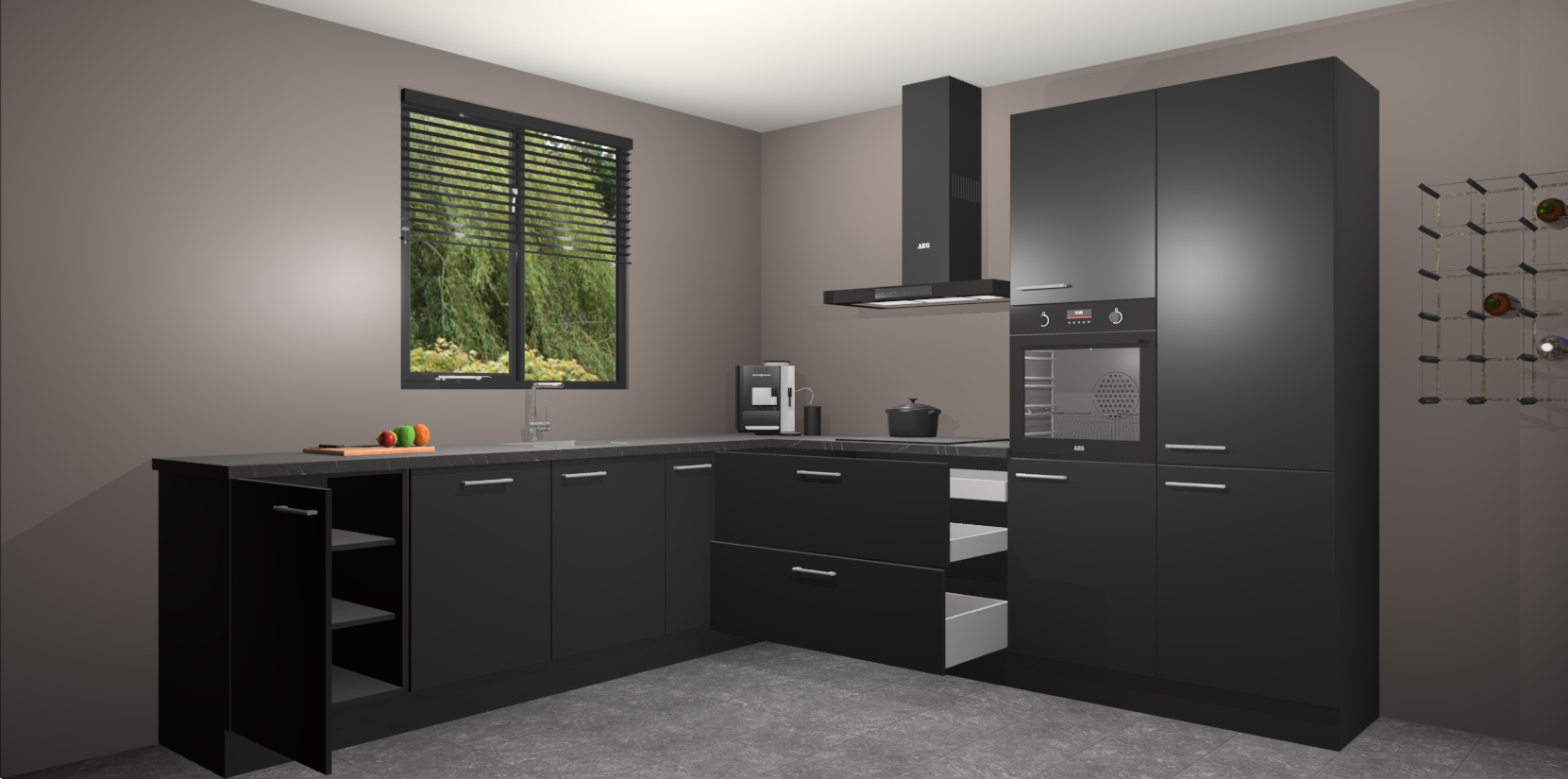 Welkom bij de stijlvolle en verfijnde Zwarte keuken Porto. Deze Duitse kwaliteitskeuken is donker, modern en prachtig afgewerkt van binnen en van buiten! Voor mensen die superieure kwaliteit willen zonder in te leveren op stijl, is dit de perfecte keuze.