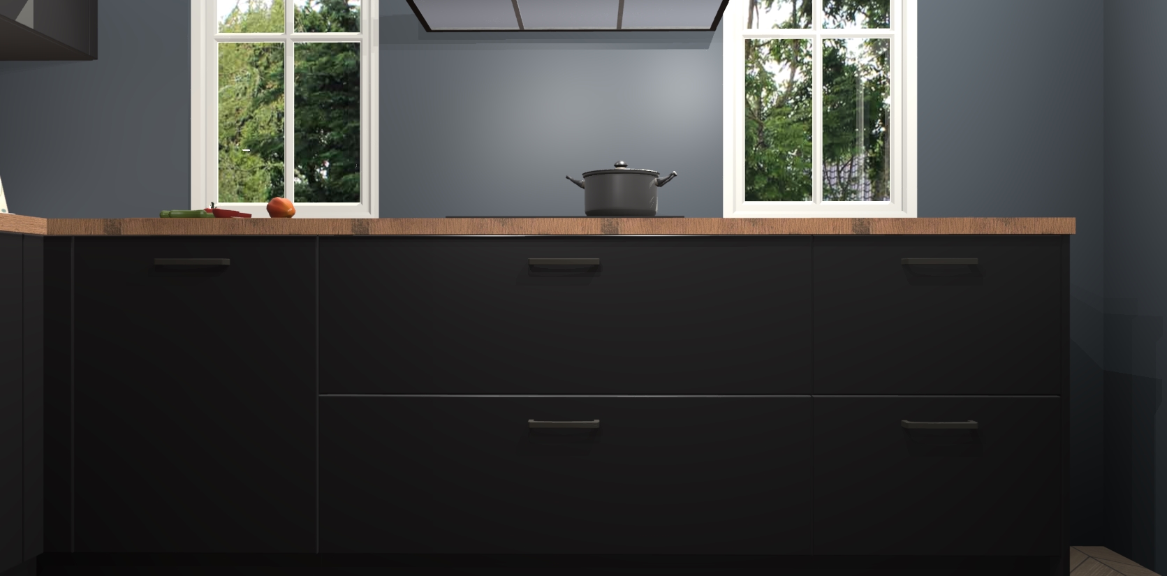 In deze box zijn alle kleuren verzameld van de deuren en werkbladen. Vraag de gratis kleurenbox aan en kijk thuis rustig verder!
