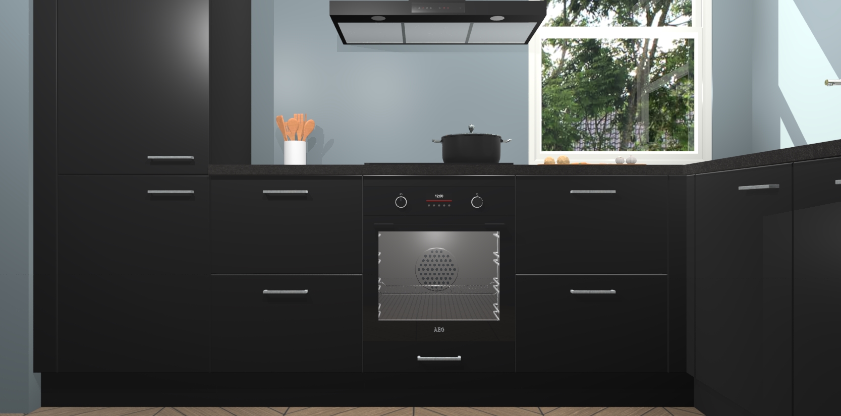 Wat maakt deze keuken zo bijzonder? Ten eerste geeft het houten werkblad uw ruimte een onmiskenbaar klassieke uitstraling. De natuurlijke afwerking roept warmte en elegantie op die nooit uit de mode zullen raken. Bovendien is het gemakkelijk schoon te houden en te onderhouden, zodat je er jarenlang plezier van kunt hebben. Als u op zoek bent naar extra gemak in uw keuken, dan heeft u bij het plaatsen van een bestelling bij ons ook de optie om uw toestellen te upgraden naar AEG-modellen - zo haalt u moderne innovatie van topmerken in apparatentechnologie rechtstreeks in huis.