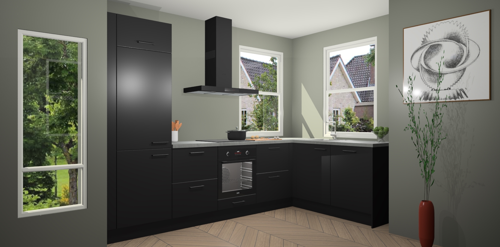 Wat maakt deze keuken zo bijzonder? Ten eerste geeft het houten werkblad uw ruimte een onmiskenbaar klassieke uitstraling. De natuurlijke afwerking roept warmte en elegantie op die nooit uit de mode zullen raken. Bovendien is het gemakkelijk schoon te houden en te onderhouden, zodat je er jarenlang plezier van kunt hebben. Als u op zoek bent naar extra gemak in uw keuken, dan heeft u bij het plaatsen van een bestelling bij ons ook de optie om uw toestellen te upgraden naar AEG-modellen - zo haalt u moderne innovatie van topmerken in apparatentechnologie rechtstreeks in huis.