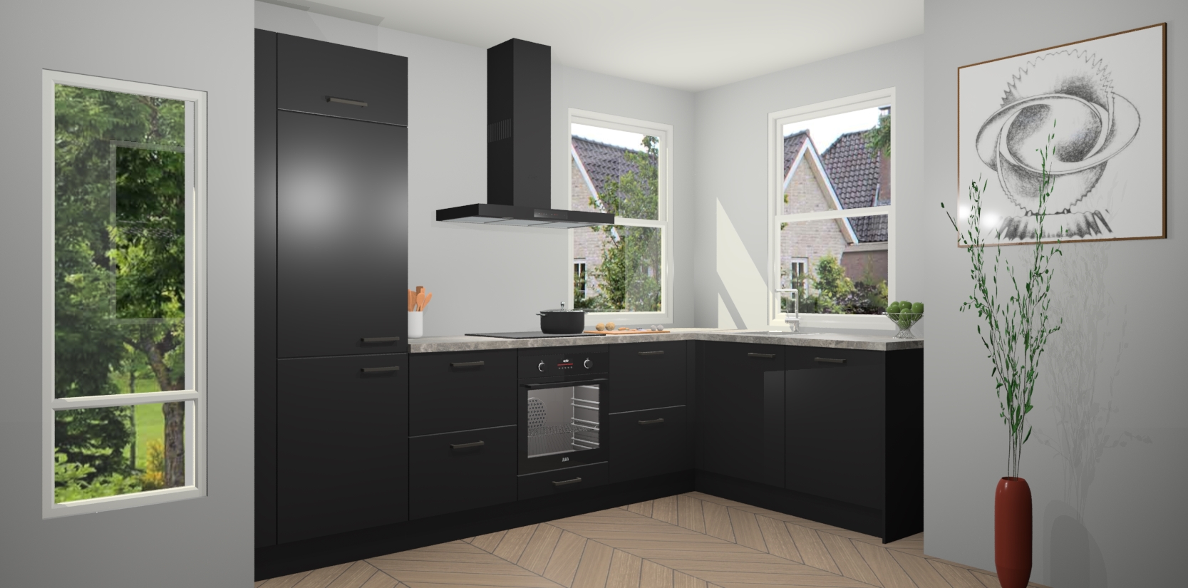 Wat maakt deze keuken zo bijzonder? Ten eerste geeft het houten werkblad uw ruimte een onmiskenbaar klassieke uitstraling. De natuurlijke afwerking roept warmte en elegantie op die nooit uit de mode zullen raken. Bovendien is het gemakkelijk schoon te houden en te onderhouden, zodat je er jarenlang plezier van kunt hebben. Als u op zoek bent naar extra gemak in uw keuken, dan heeft u bij het plaatsen van een bestelling bij ons ook de optie om uw toestellen te upgraden naar AEG-modellen - zo haalt u moderne innovatie van topmerken in apparatentechnologie rechtstreeks in huis.