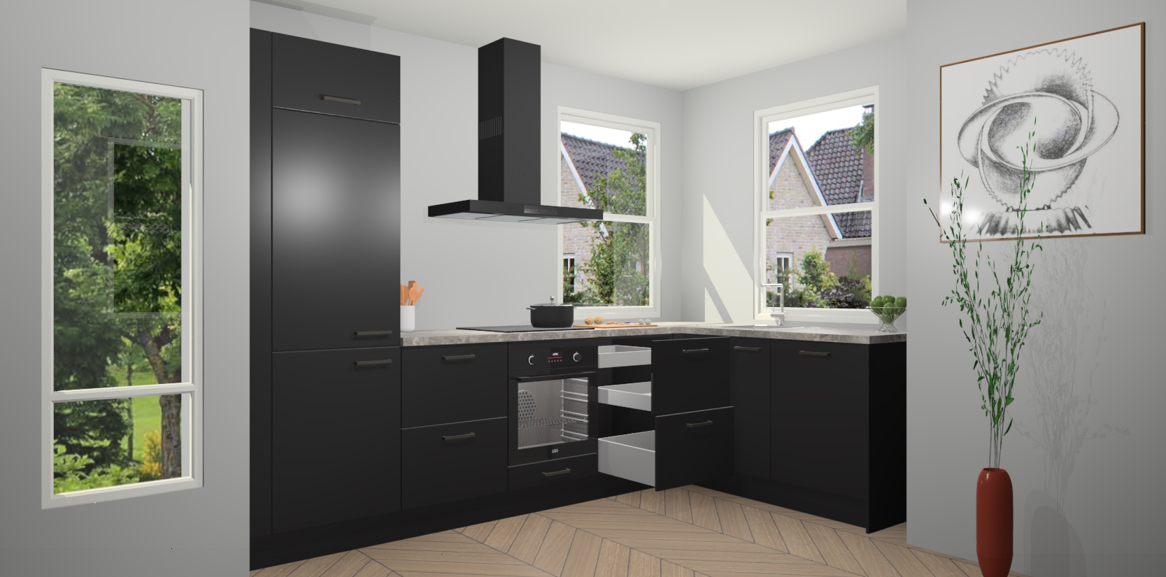 Inclusief plinten, stelpoten en werkblad