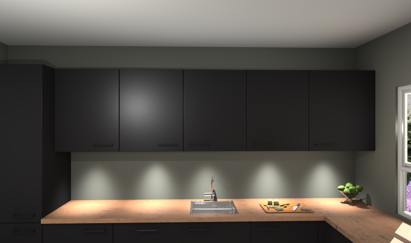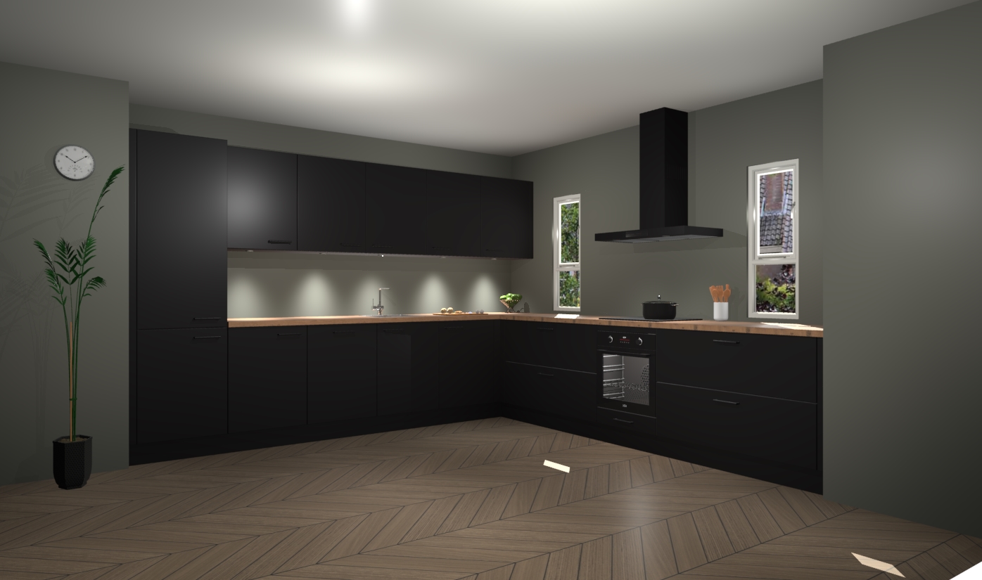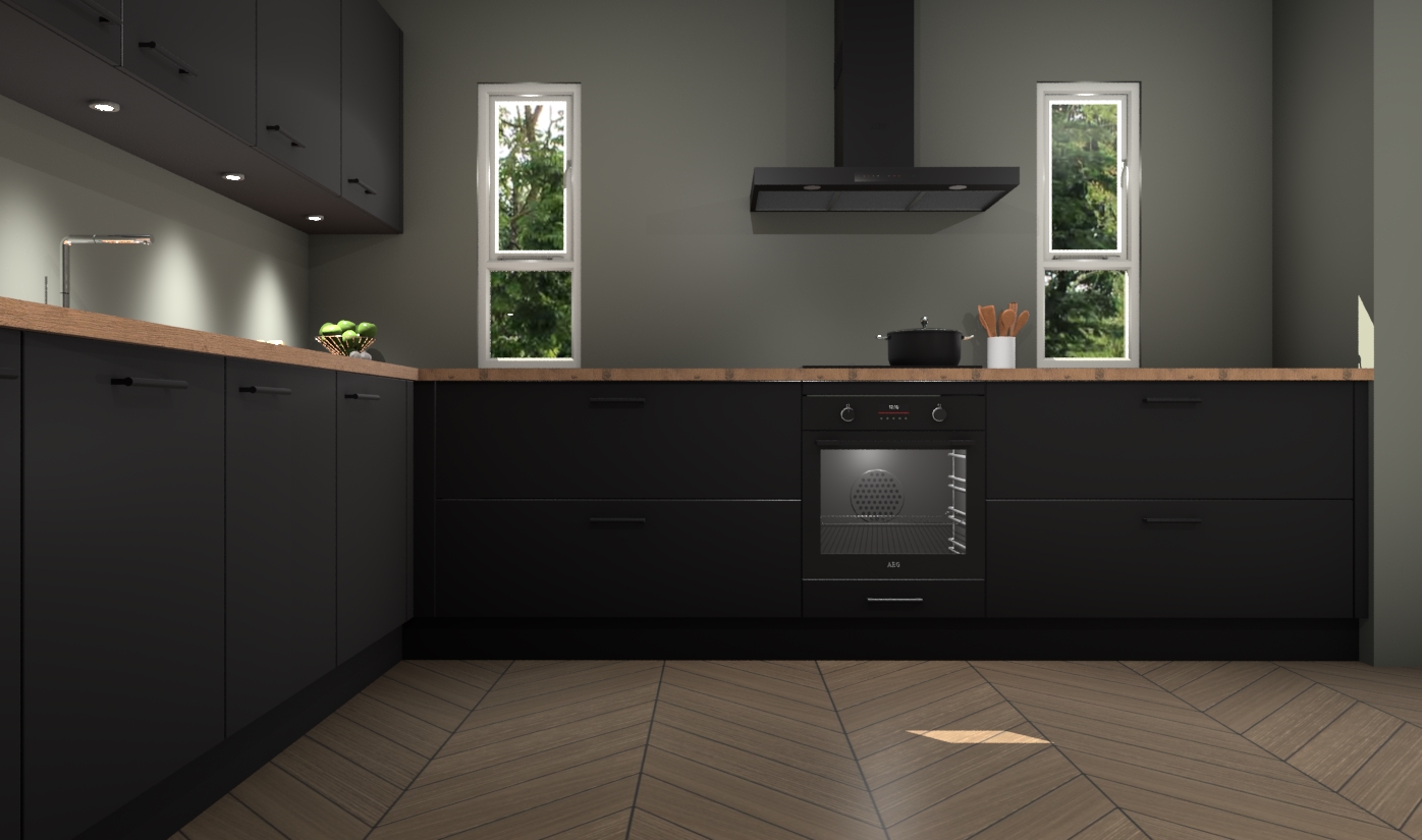 De zwarte keuken is een ideale hoekkeuken en heeft alle functies en apparatuur die u maar nodig kunt hebben. Bij de bestelling krijgt u een oven, inductiekookplaat, afzuigkap, vaatwasser en koelkast - deze kunnen desgewenst eenvoudig worden uitgebreid naar AEG na bestellen. Elke kast wordt ook voor gemonteerd geleverd met soft close deuren die jarenlang gebruik beloven. Stelt u zich voor dat u geen gedoe heeft met vervelende montage - vanaf het moment dat u uw bestelling plaats, duurt het slechts 7 weken voor het bij u thuis geleverd wordt.