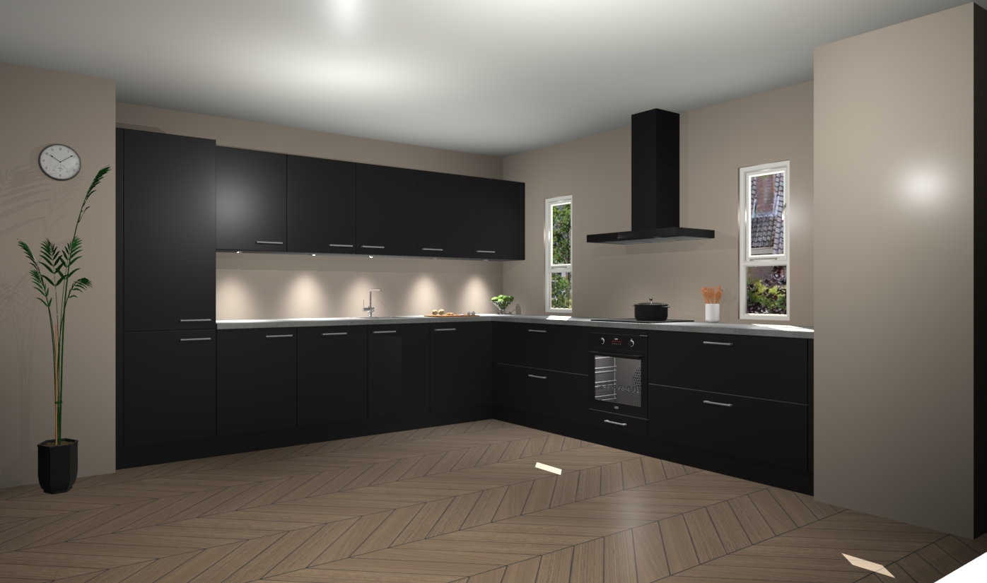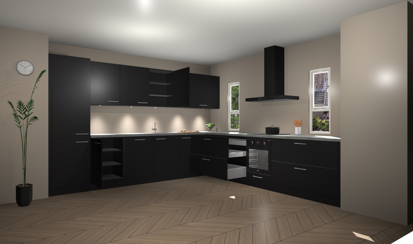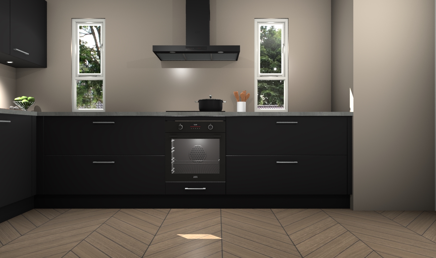 De zwarte keuken is een ideale hoekkeuken en heeft alle functies en apparatuur die u maar nodig kunt hebben. Bij de bestelling krijgt u een oven, inductiekookplaat, afzuigkap, vaatwasser en koelkast - deze kunnen desgewenst eenvoudig worden uitgebreid naar AEG na bestellen. Elke kast wordt ook voor gemonteerd geleverd met soft close deuren die jarenlang gebruik beloven. Stelt u zich voor dat u geen gedoe heeft met vervelende montage - vanaf het moment dat u uw bestelling plaats, duurt het slechts 7 weken voor het bij u thuis geleverd wordt.