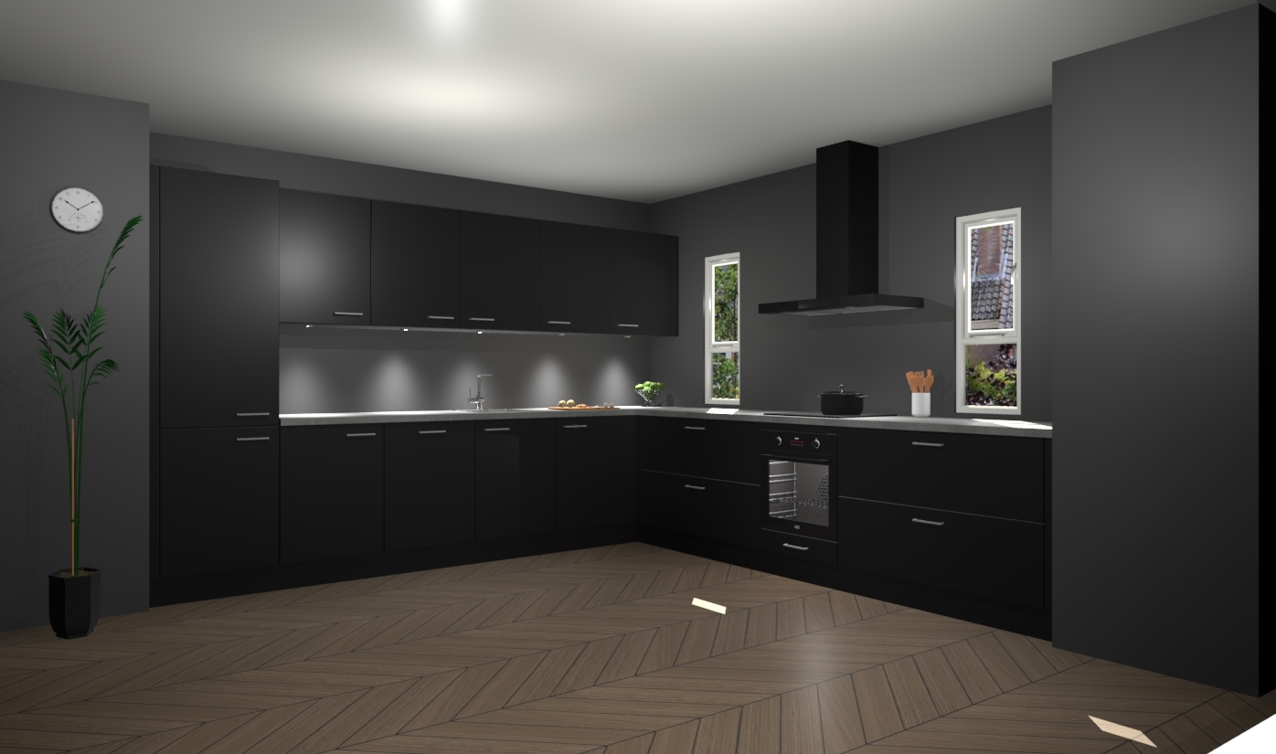 De zwarte keuken is een ideale hoekkeuken en heeft alle functies en apparatuur die u maar nodig kunt hebben. Bij de bestelling krijgt u een oven, inductiekookplaat, afzuigkap, vaatwasser en koelkast - deze kunnen desgewenst eenvoudig worden uitgebreid naar AEG na bestellen. Elke kast wordt ook voor gemonteerd geleverd met soft close deuren die jarenlang gebruik beloven. Stelt u zich voor dat u geen gedoe heeft met vervelende montage - vanaf het moment dat u uw bestelling plaats, duurt het slechts 7 weken voor het bij u thuis geleverd wordt.