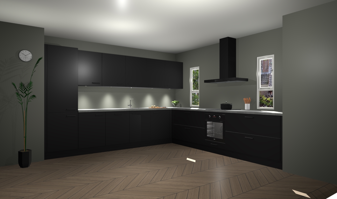 De zwarte keuken is een ideale hoekkeuken en heeft alle functies en apparatuur die u maar nodig kunt hebben. Bij de bestelling krijgt u een oven, inductiekookplaat, afzuigkap, vaatwasser en koelkast - deze kunnen desgewenst eenvoudig worden uitgebreid naar AEG na bestellen. Elke kast wordt ook voor gemonteerd geleverd met soft close deuren die jarenlang gebruik beloven. Stelt u zich voor dat u geen gedoe heeft met vervelende montage - vanaf het moment dat u uw bestelling plaats, duurt het slechts 7 weken voor het bij u thuis geleverd wordt.