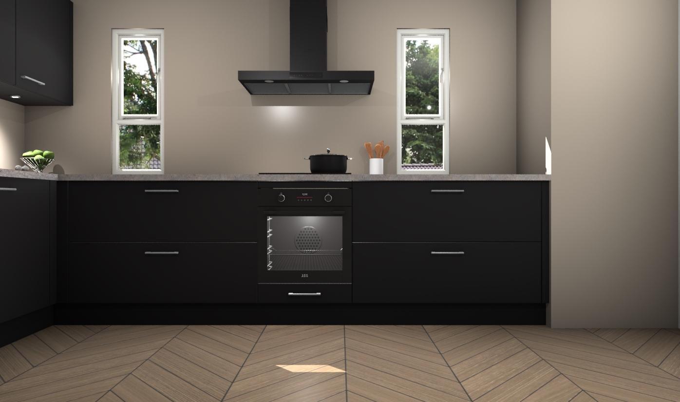De zwarte keuken is een ideale hoekkeuken en heeft alle functies en apparatuur die u maar nodig kunt hebben. Bij de bestelling krijgt u een oven, inductiekookplaat, afzuigkap, vaatwasser en koelkast - deze kunnen desgewenst eenvoudig worden uitgebreid naar AEG na bestellen. Elke kast wordt ook voor gemonteerd geleverd met soft close deuren die jarenlang gebruik beloven. Stelt u zich voor dat u geen gedoe heeft met vervelende montage - vanaf het moment dat u uw bestelling plaats, duurt het slechts 7 weken voor het bij u thuis geleverd wordt.