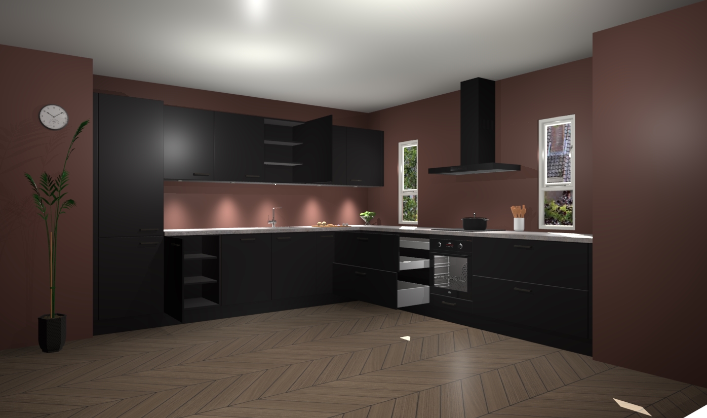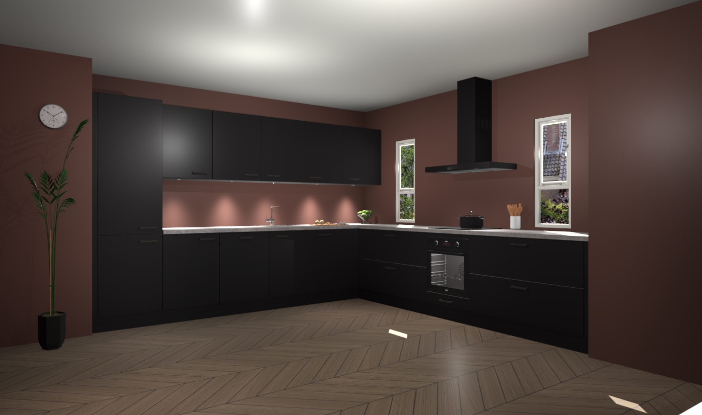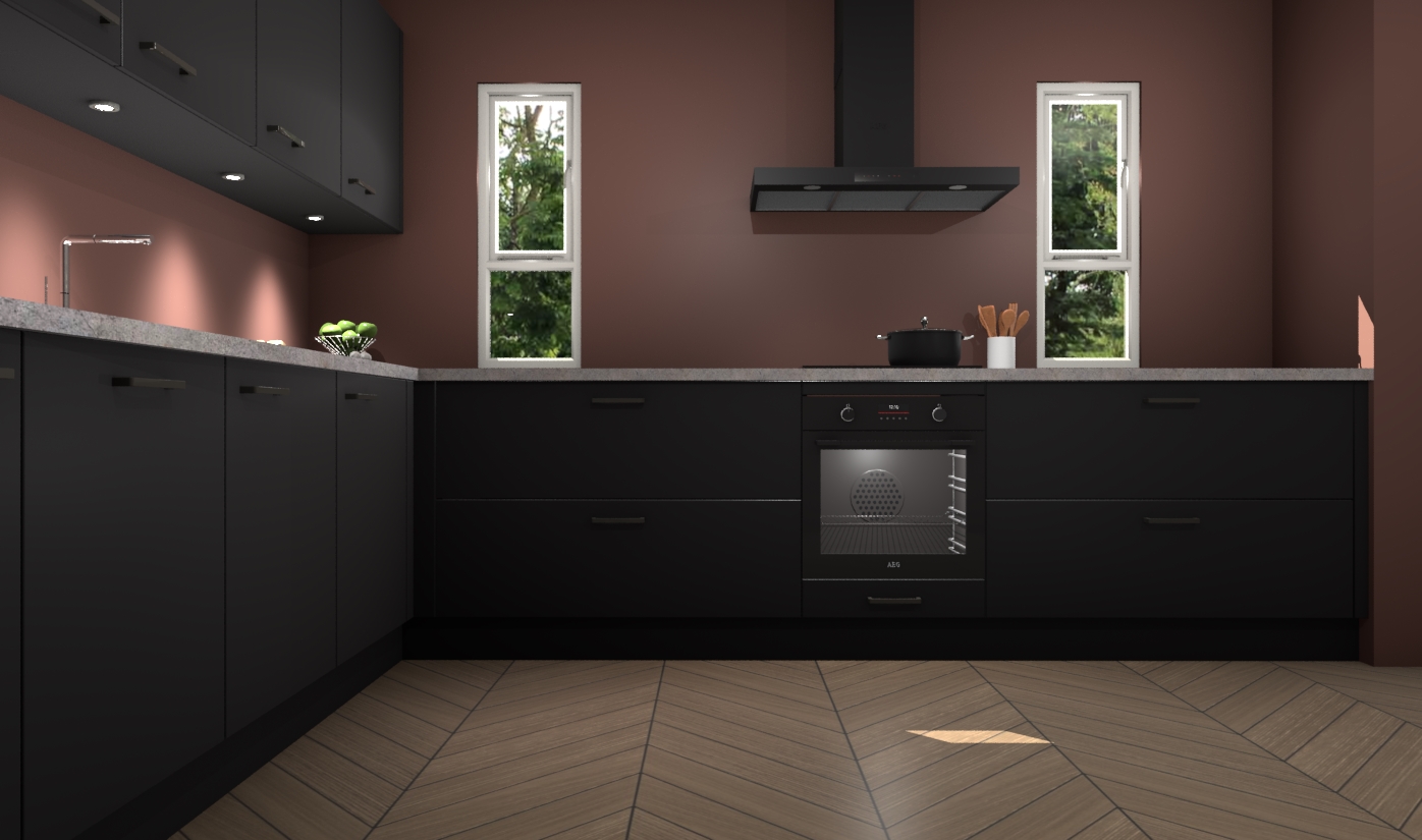 De zwarte keuken is een ideale hoekkeuken en heeft alle functies en apparatuur die u maar nodig kunt hebben. Bij de bestelling krijgt u een oven, inductiekookplaat, afzuigkap, vaatwasser en koelkast - deze kunnen desgewenst eenvoudig worden uitgebreid naar AEG na bestellen. Elke kast wordt ook voor gemonteerd geleverd met soft close deuren die jarenlang gebruik beloven. Stelt u zich voor dat u geen gedoe heeft met vervelende montage - vanaf het moment dat u uw bestelling plaats, duurt het slechts 7 weken voor het bij u thuis geleverd wordt.
