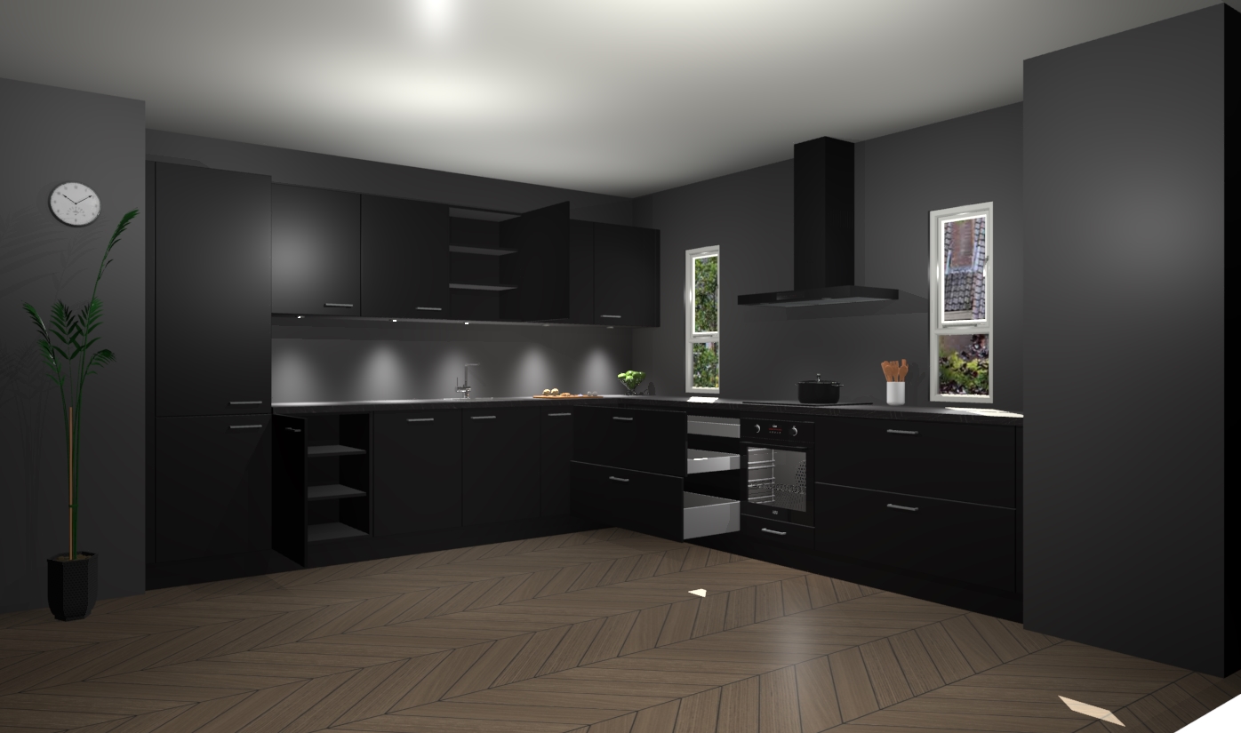 De zwarte keuken is een ideale hoekkeuken en heeft alle functies en apparatuur die u maar nodig kunt hebben. Bij de bestelling krijgt u een oven, inductiekookplaat, afzuigkap, vaatwasser en koelkast - deze kunnen desgewenst eenvoudig worden uitgebreid naar AEG na bestellen. Elke kast wordt ook voor gemonteerd geleverd met soft close deuren die jarenlang gebruik beloven. Stelt u zich voor dat u geen gedoe heeft met vervelende montage - vanaf het moment dat u uw bestelling plaats, duurt het slechts 7 weken voor het bij u thuis geleverd wordt.