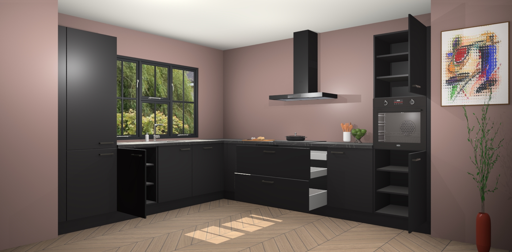 In deze box zijn alle kleuren verzameld van de deuren en werkbladen. Vraag de gratis kleurenbox aan en kijk thuis rustig verder!