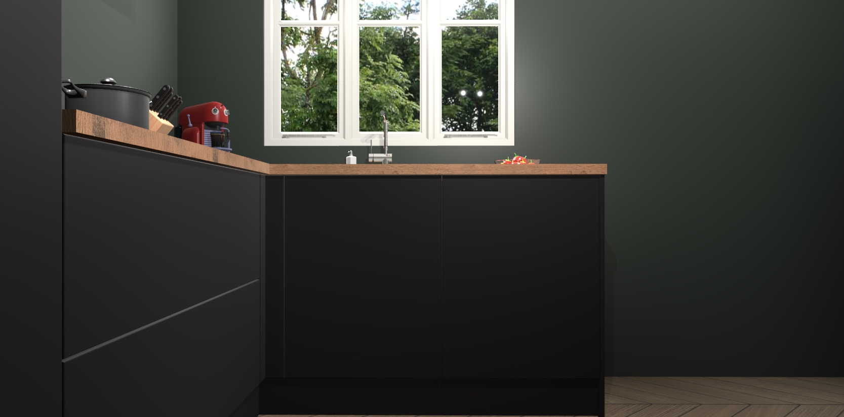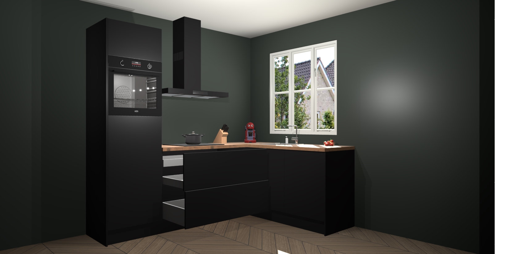 Dit model biedt u voldoende opbergruimte en vijf ingebouwde apparaten: een oven, inductiekookplaat, afzuigkap, vaatwasser en koelkast. Deze apparaten kunnen gemakkelijk worden geüpgrade naar AEG nadat u besteld heeft. De verschillende laden en kastjes bevatten softclose-deuren waardoor ze gezellig dichtvallen met een geruststellend helemaal geruisloos geluid. En dat is nog niet alles! We garanderen ook dat de prijs altijd laag blijft - dus haal nu uw Zwarte keuken Victoria terwijl het kan.