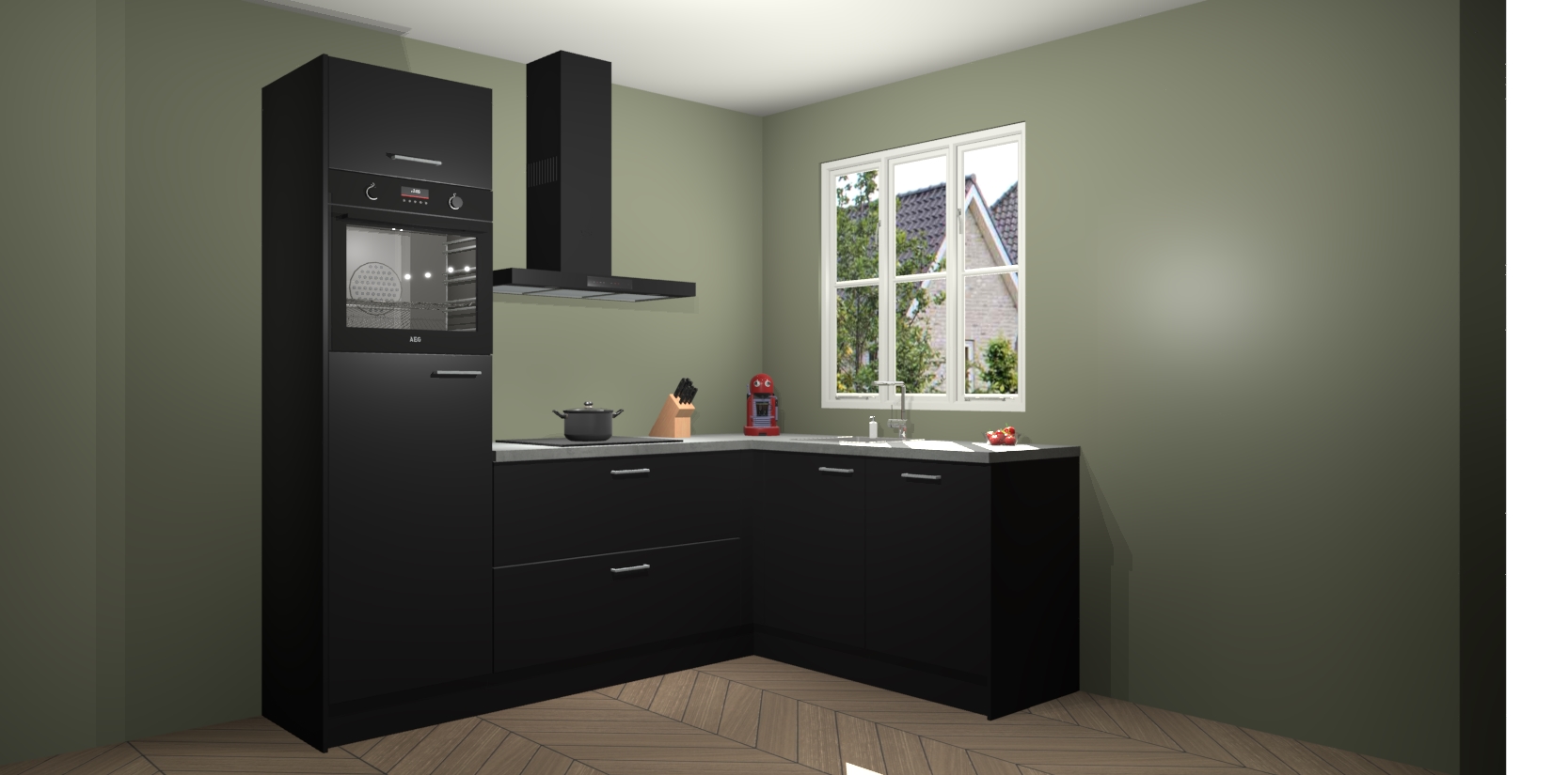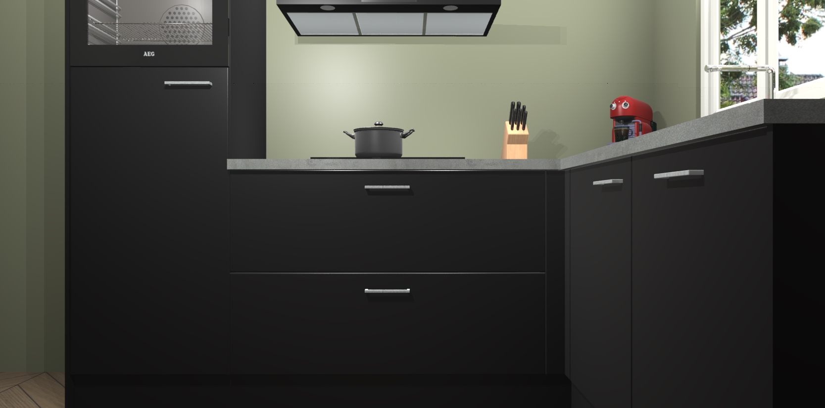 Dit model biedt u voldoende opbergruimte en vijf ingebouwde apparaten: een oven, inductiekookplaat, afzuigkap, vaatwasser en koelkast. Deze apparaten kunnen gemakkelijk worden geüpgrade naar AEG nadat u besteld heeft. De verschillende laden en kastjes bevatten softclose-deuren waardoor ze gezellig dichtvallen met een geruststellend helemaal geruisloos geluid. En dat is nog niet alles! We garanderen ook dat de prijs altijd laag blijft - dus haal nu uw Zwarte keuken Victoria terwijl het kan.