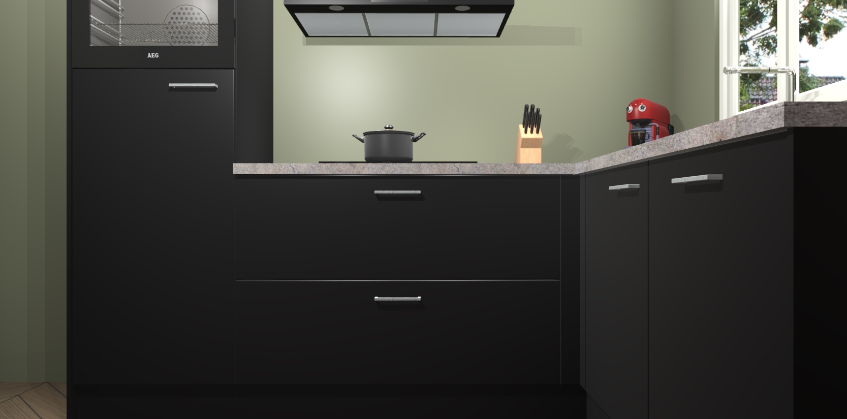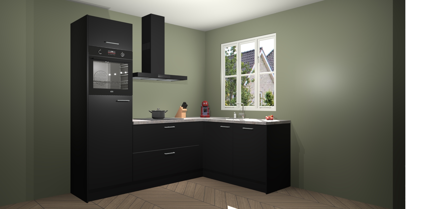 Dit model biedt u voldoende opbergruimte en vijf ingebouwde apparaten: een oven, inductiekookplaat, afzuigkap, vaatwasser en koelkast. Deze apparaten kunnen gemakkelijk worden geüpgrade naar AEG nadat u besteld heeft. De verschillende laden en kastjes bevatten softclose-deuren waardoor ze gezellig dichtvallen met een geruststellend helemaal geruisloos geluid. En dat is nog niet alles! We garanderen ook dat de prijs altijd laag blijft - dus haal nu uw Zwarte keuken Victoria terwijl het kan.