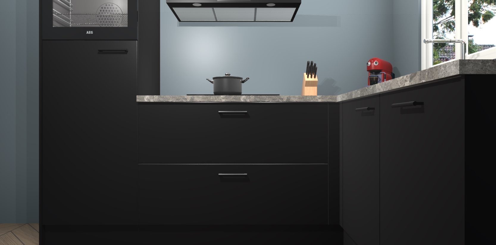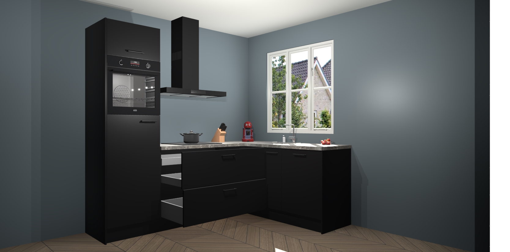 Dit model biedt u voldoende opbergruimte en vijf ingebouwde apparaten: een oven, inductiekookplaat, afzuigkap, vaatwasser en koelkast. Deze apparaten kunnen gemakkelijk worden geüpgrade naar AEG nadat u besteld heeft. De verschillende laden en kastjes bevatten softclose-deuren waardoor ze gezellig dichtvallen met een geruststellend helemaal geruisloos geluid. En dat is nog niet alles! We garanderen ook dat de prijs altijd laag blijft - dus haal nu uw Zwarte keuken Victoria terwijl het kan.