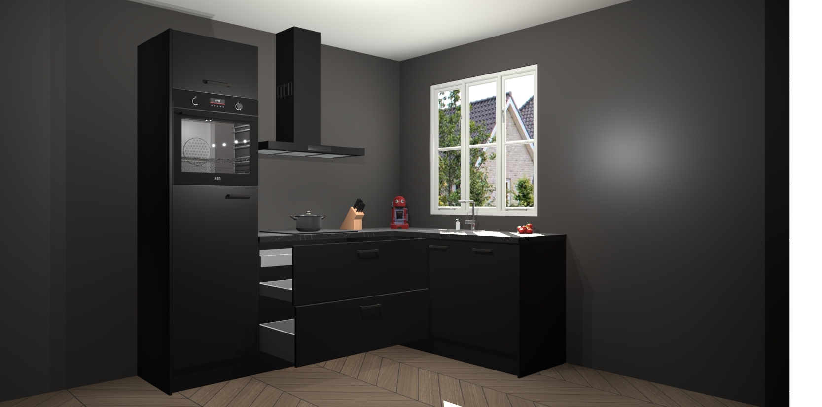 Dit model biedt u voldoende opbergruimte en vijf ingebouwde apparaten: een oven, inductiekookplaat, afzuigkap, vaatwasser en koelkast. Deze apparaten kunnen gemakkelijk worden geüpgrade naar AEG nadat u besteld heeft. De verschillende laden en kastjes bevatten softclose-deuren waardoor ze gezellig dichtvallen met een geruststellend helemaal geruisloos geluid. En dat is nog niet alles! We garanderen ook dat de prijs altijd laag blijft - dus haal nu uw Zwarte keuken Victoria terwijl het kan.