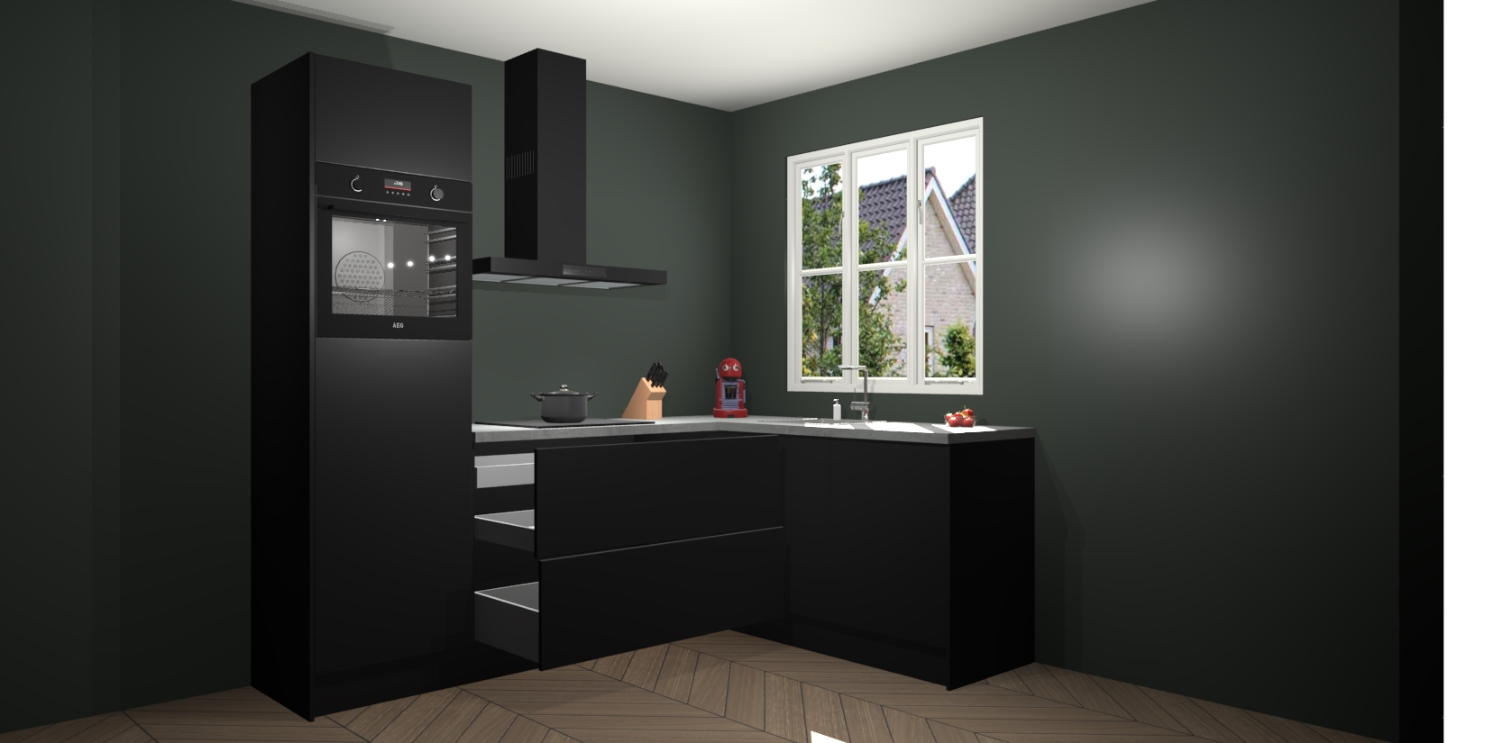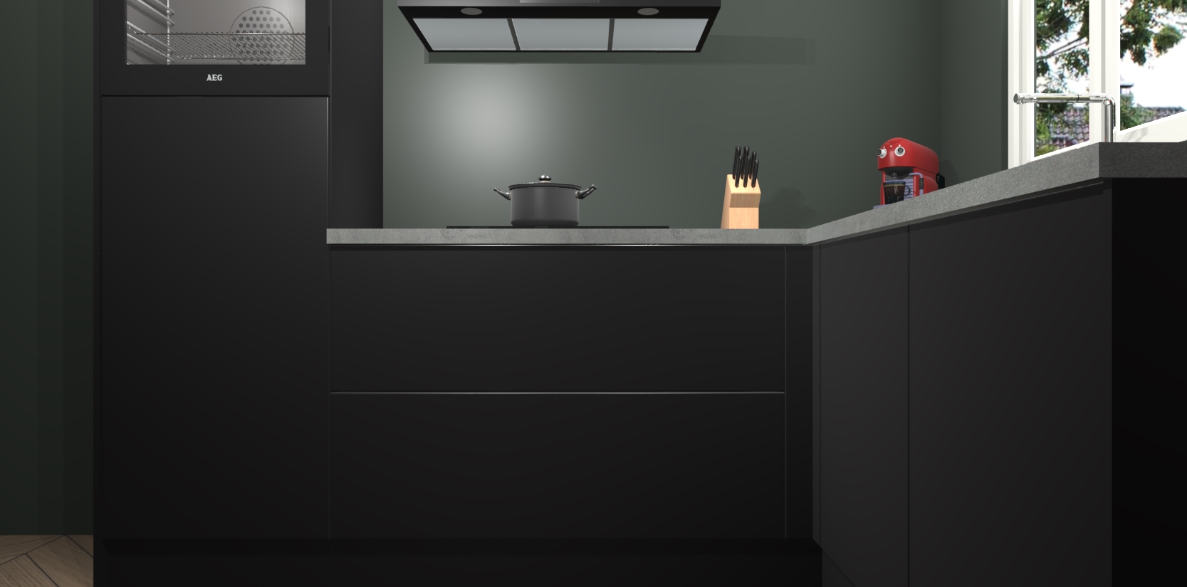Dit model biedt u voldoende opbergruimte en vijf ingebouwde apparaten: een oven, inductiekookplaat, afzuigkap, vaatwasser en koelkast. Deze apparaten kunnen gemakkelijk worden geüpgrade naar AEG nadat u besteld heeft. De verschillende laden en kastjes bevatten softclose-deuren waardoor ze gezellig dichtvallen met een geruststellend helemaal geruisloos geluid. En dat is nog niet alles! We garanderen ook dat de prijs altijd laag blijft - dus haal nu uw Zwarte keuken Victoria terwijl het kan.