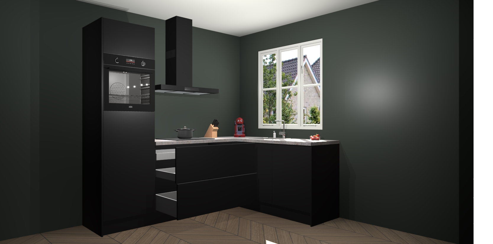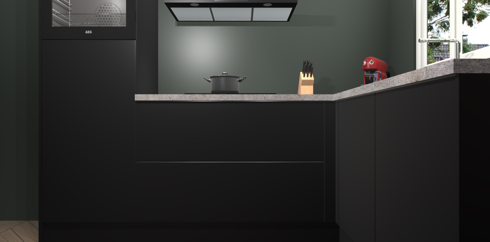 Dit model biedt u voldoende opbergruimte en vijf ingebouwde apparaten: een oven, inductiekookplaat, afzuigkap, vaatwasser en koelkast. Deze apparaten kunnen gemakkelijk worden geüpgrade naar AEG nadat u besteld heeft. De verschillende laden en kastjes bevatten softclose-deuren waardoor ze gezellig dichtvallen met een geruststellend helemaal geruisloos geluid. En dat is nog niet alles! We garanderen ook dat de prijs altijd laag blijft - dus haal nu uw Zwarte keuken Victoria terwijl het kan.