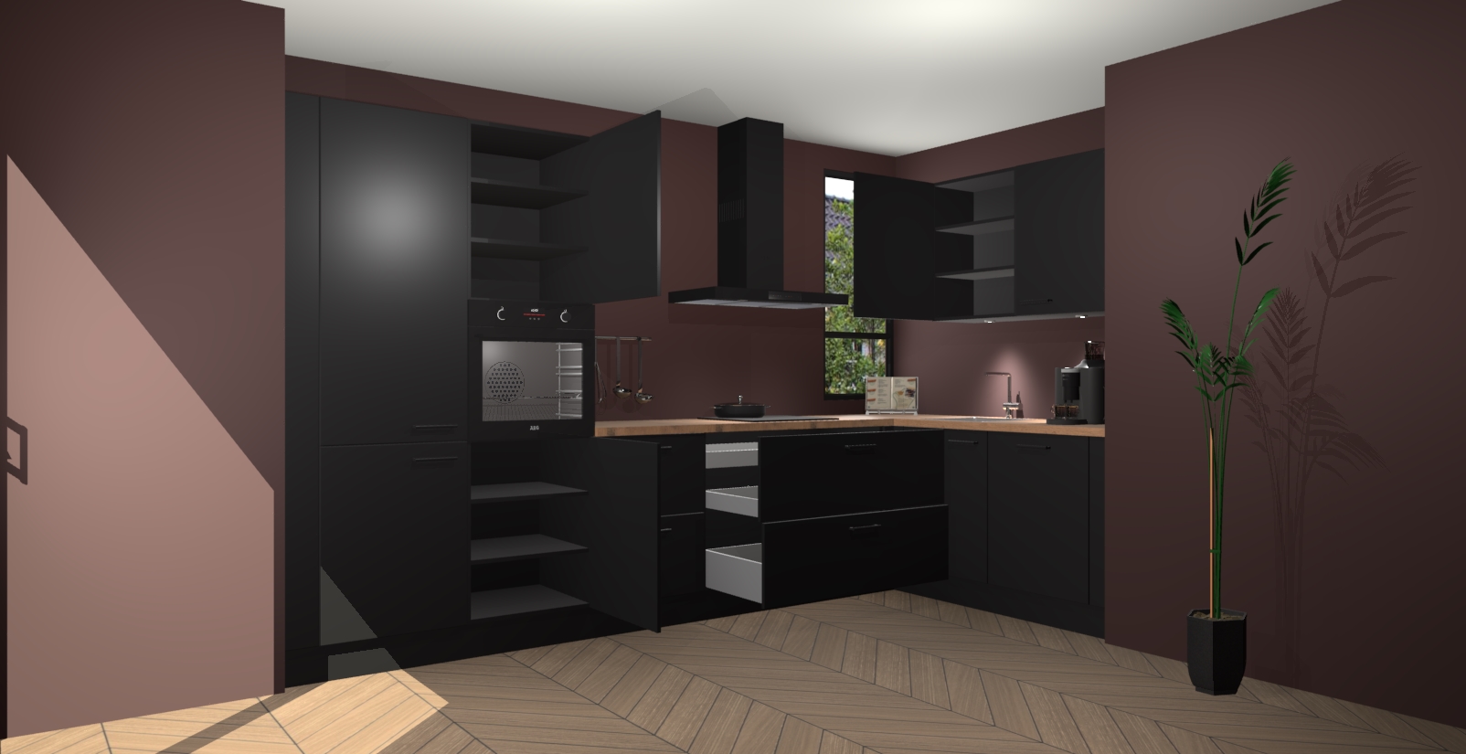 Welkom in uw nieuwe moderne keuken! Laat ons u voorstellen aan de Zwarte keuken Vlaanderen . Deze prachtige hoekkeuken straalt exclusiviteit en luxe uit als geen ander. Het strakke design, de tijdloze kleuren en het model maken van deze keuken een moderne klassieker. En met voldoende opbergruimte heeft deze keuken echt voor ieder wat wils.