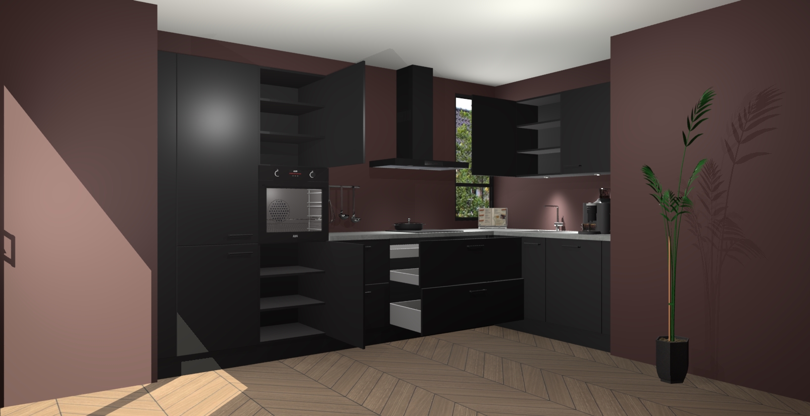 Welkom in uw nieuwe moderne keuken! Laat ons u voorstellen aan de Zwarte keuken Vlaanderen . Deze prachtige hoekkeuken straalt exclusiviteit en luxe uit als geen ander. Het strakke design, de tijdloze kleuren en het model maken van deze keuken een moderne klassieker. En met voldoende opbergruimte heeft deze keuken echt voor ieder wat wils.